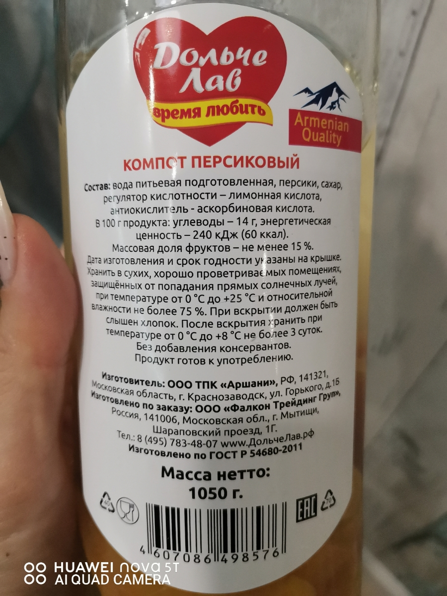 Компот Дольче Лав "Персик", 6 шт по 1 л