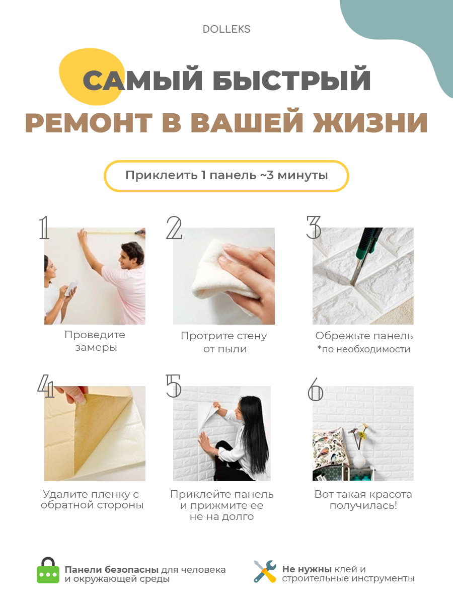 Dolleks/Стеновые панели/3d самоклеющиеся панели/блоки интерьерного покрытия "Белый кирпич" (5 шт.)