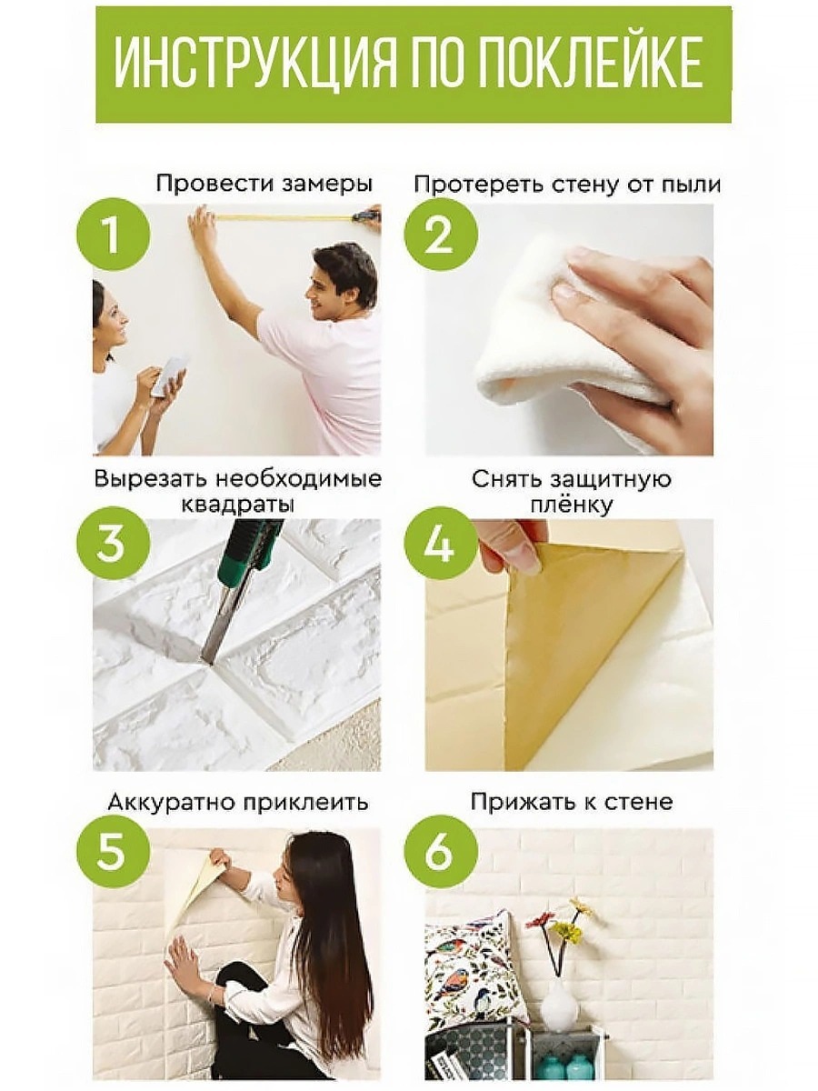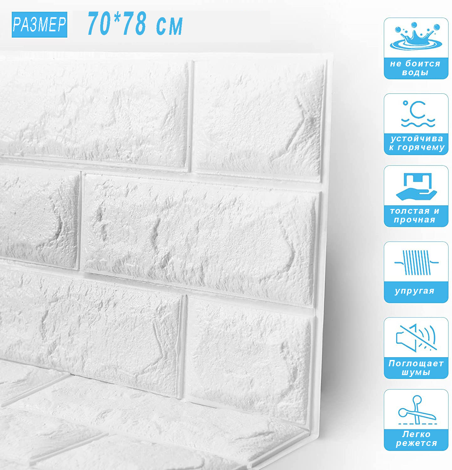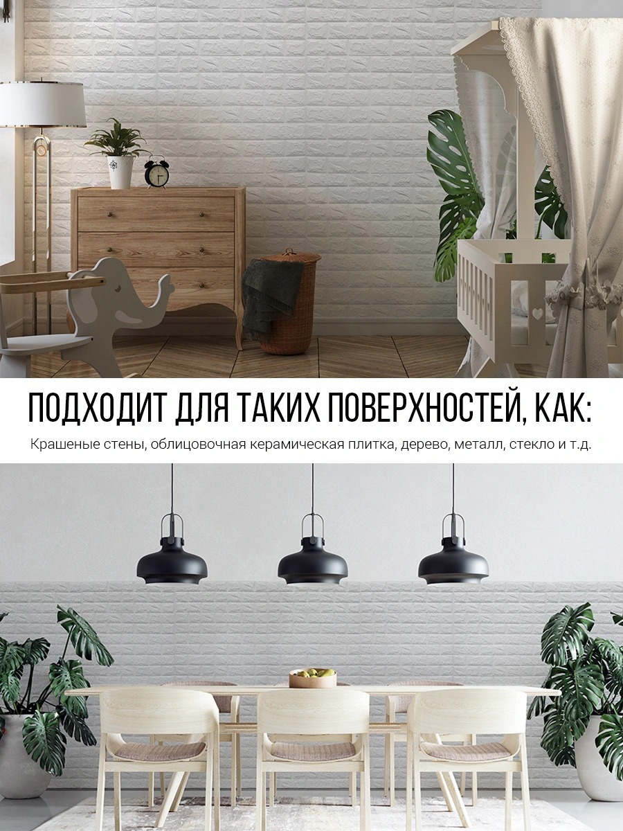 Панели для стен декоративные/мягкие/самоклеящиеся/блоки интерьерного покрытия "Белый кирпич" (1 шт.)
