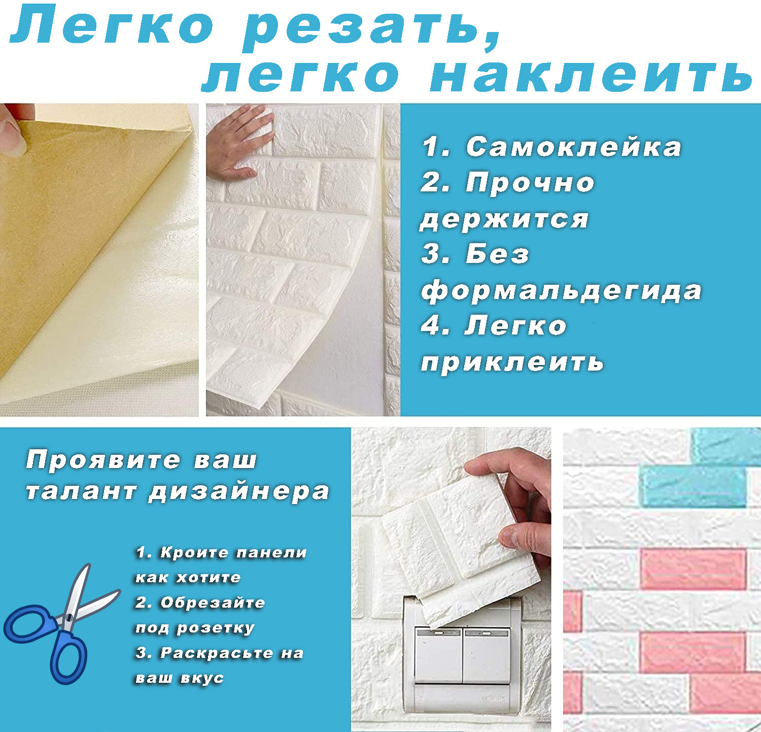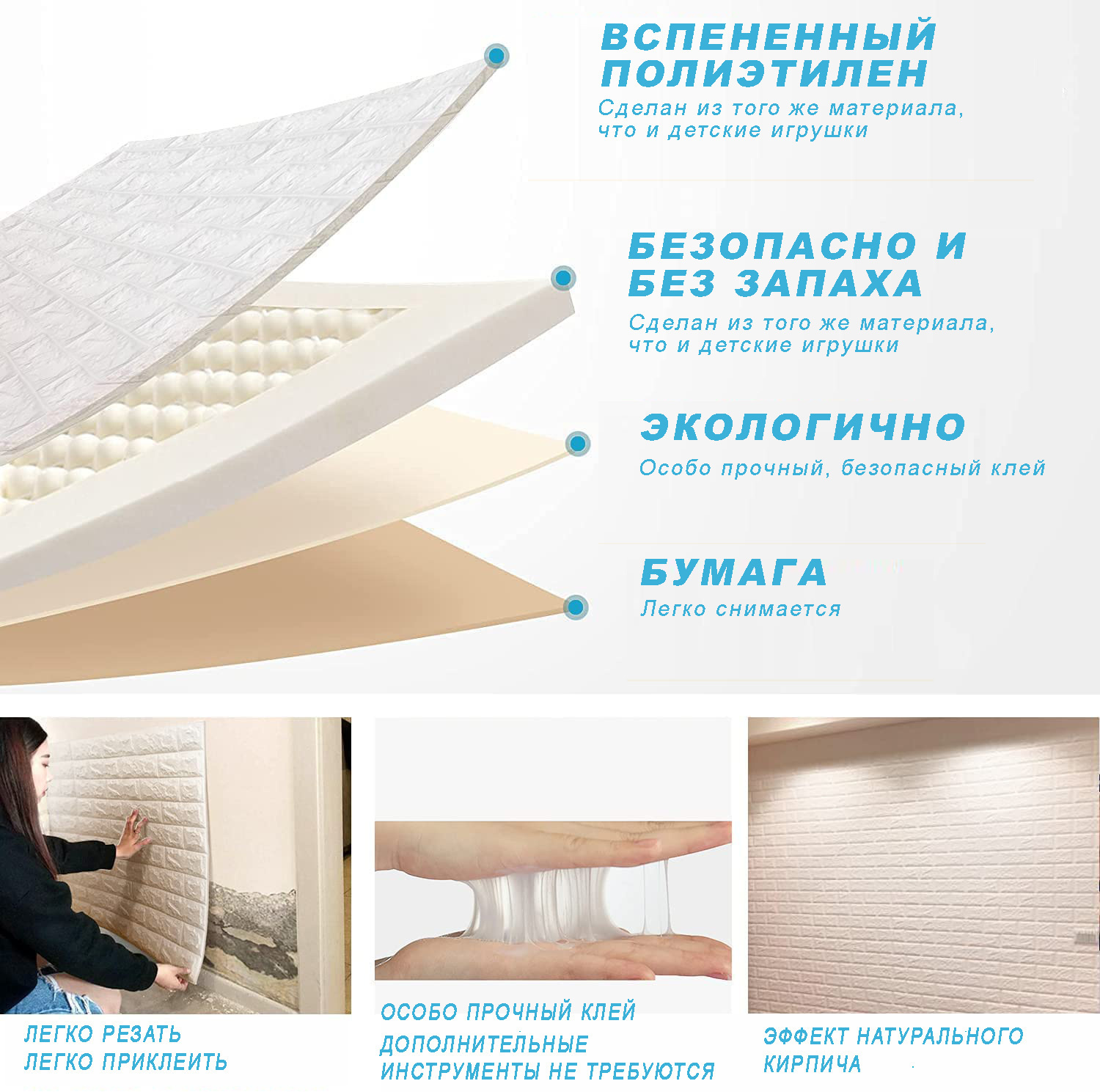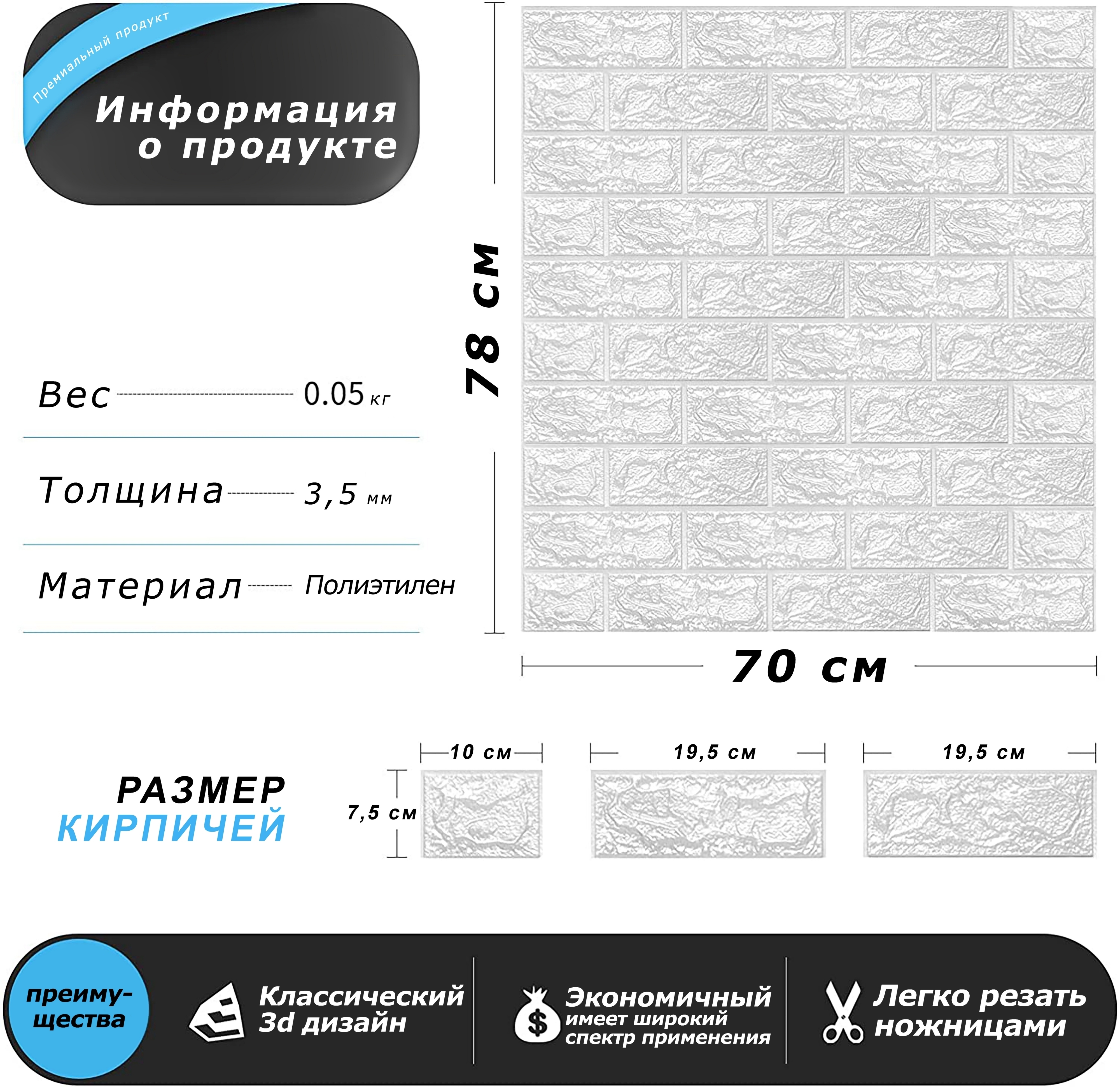Панели для стен декоративные/мягкие/самоклеящиеся/блоки интерьерного покрытия "Белый кирпич" (1 шт.)
