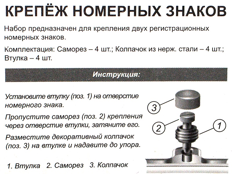 Крепеж номерного знака (саморез) с заглушкой колпачком хром (к. 4 шт.)
