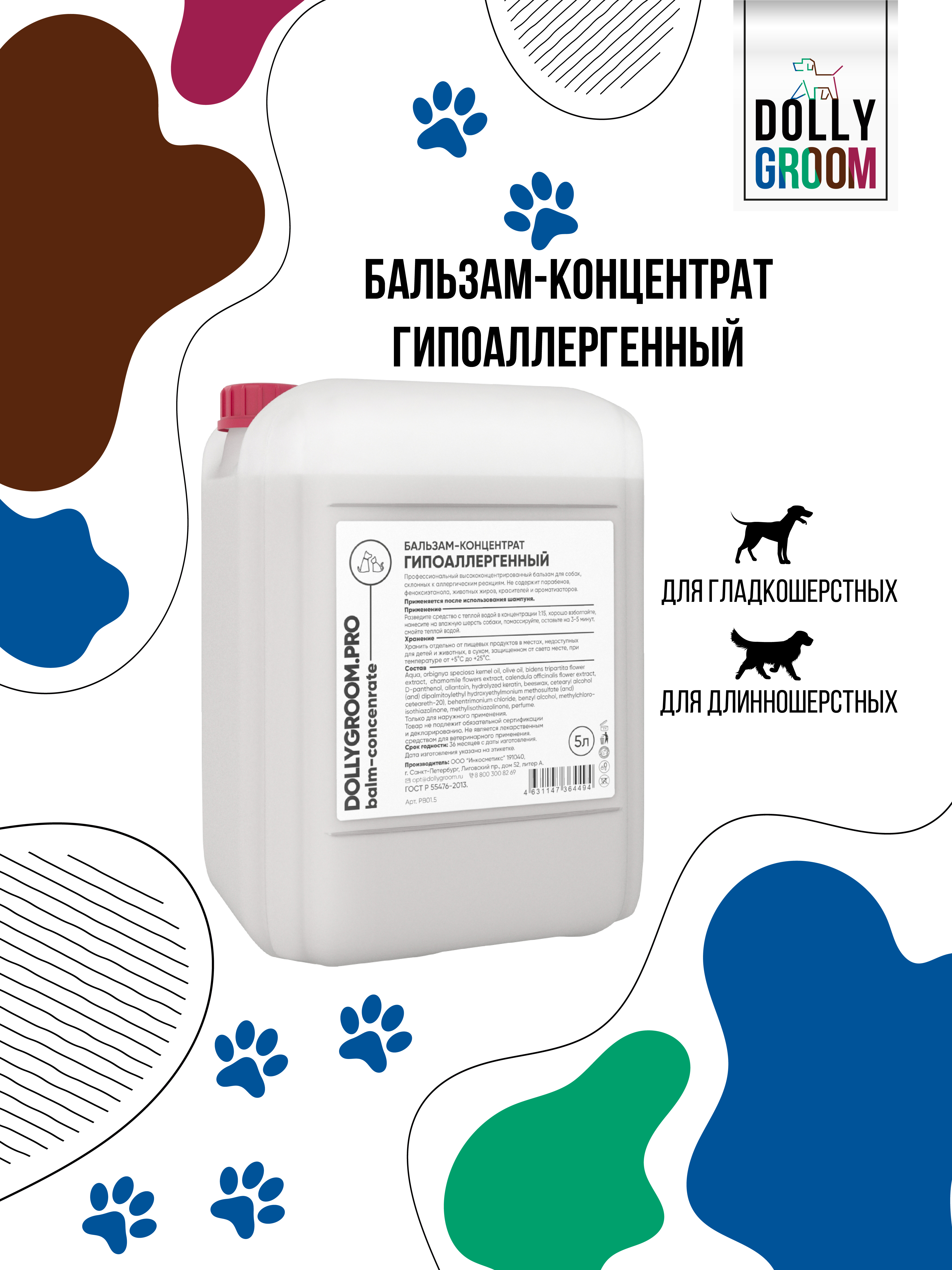Бальзам-концентрат для придания дополнительного объема шерсти животного "DollyGroom.PRO" 5л