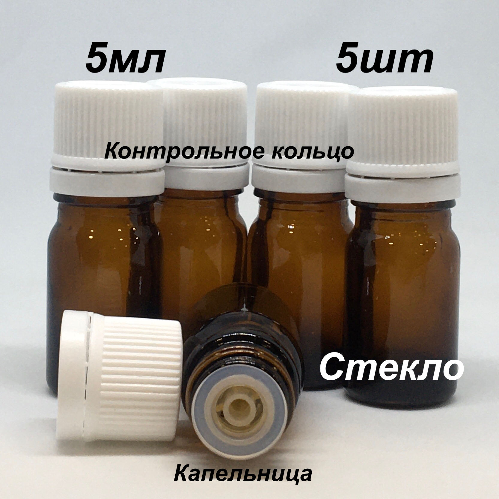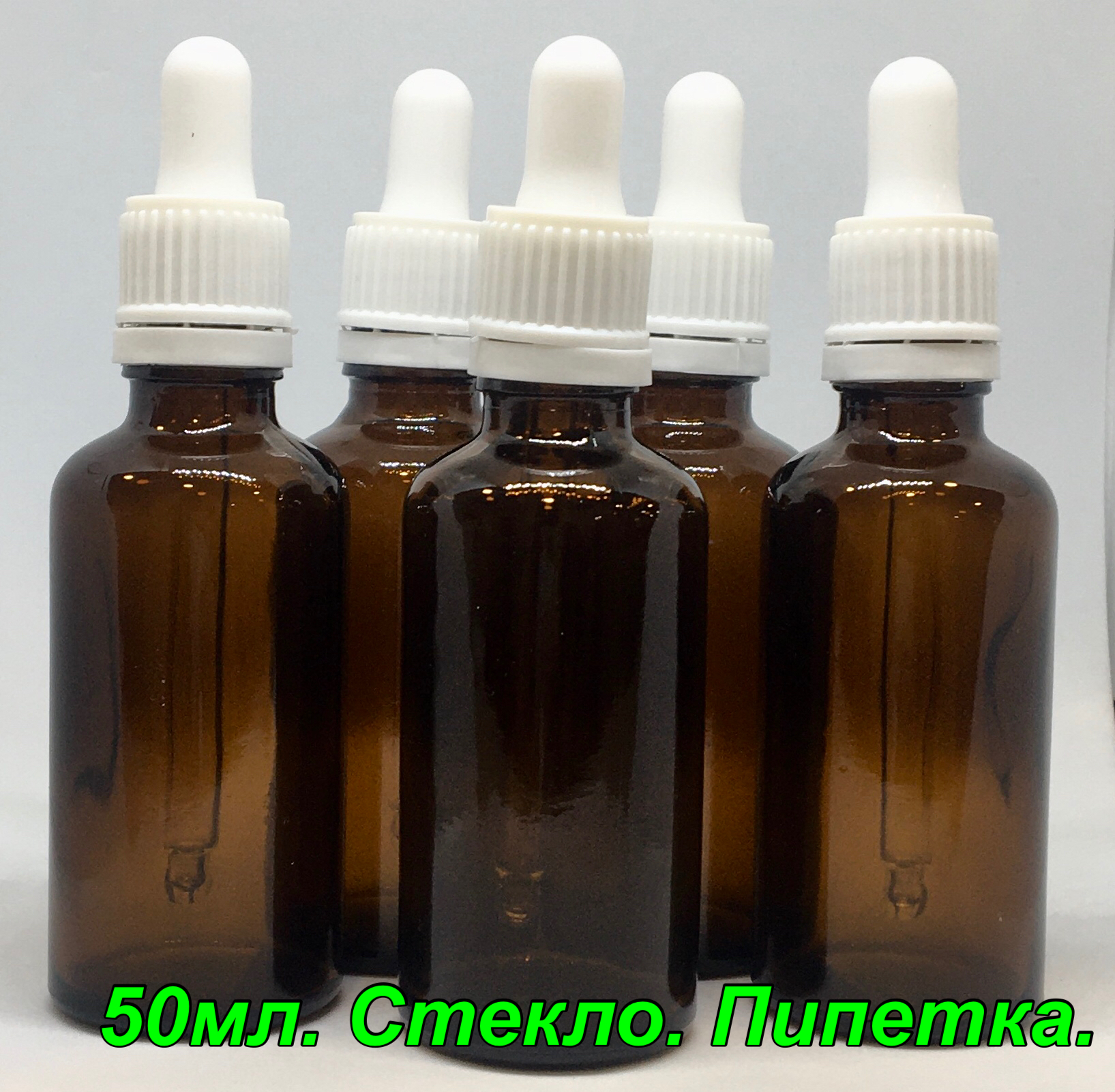Флакон 50мл из темного стекла со стеклянной пипеткой набор 5шт
