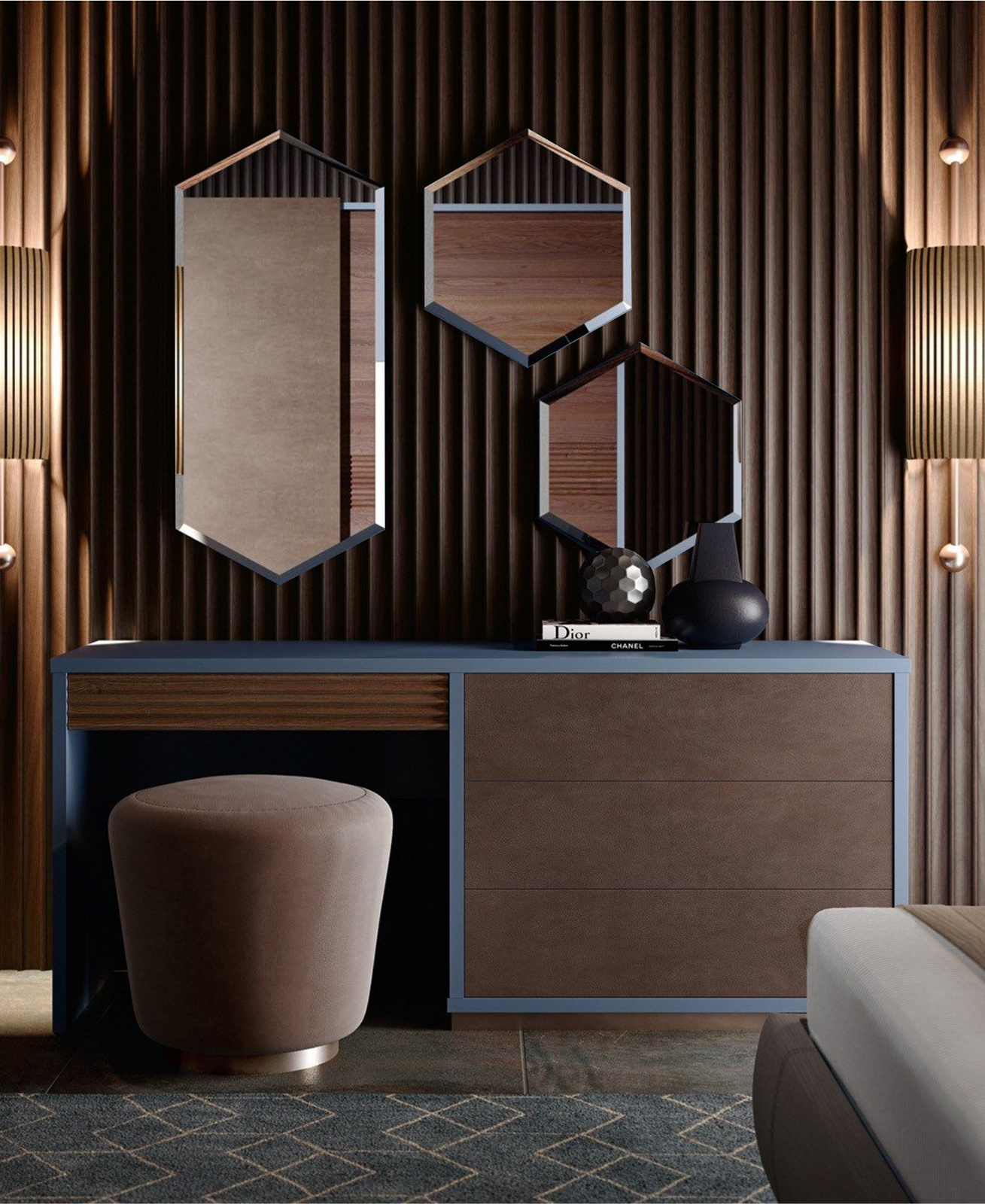 Зеркальная плитка, Плитка панно Дом Стекла 21 "Соты Серебро Бронза" 21 см x 18 см