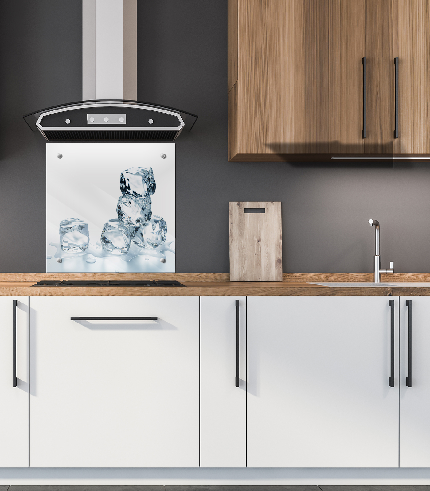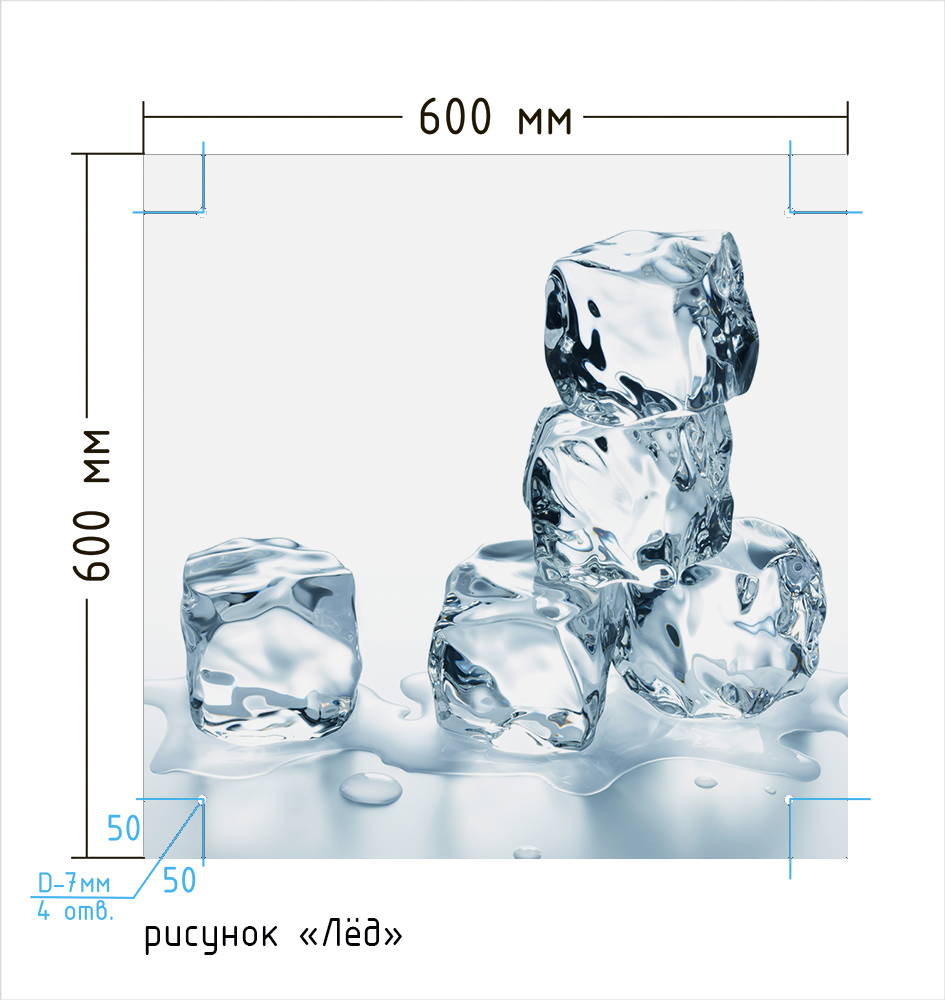 Защитный экран из закаленного стекла на кухонный фартук 600х600х4мм. с фотопечатью