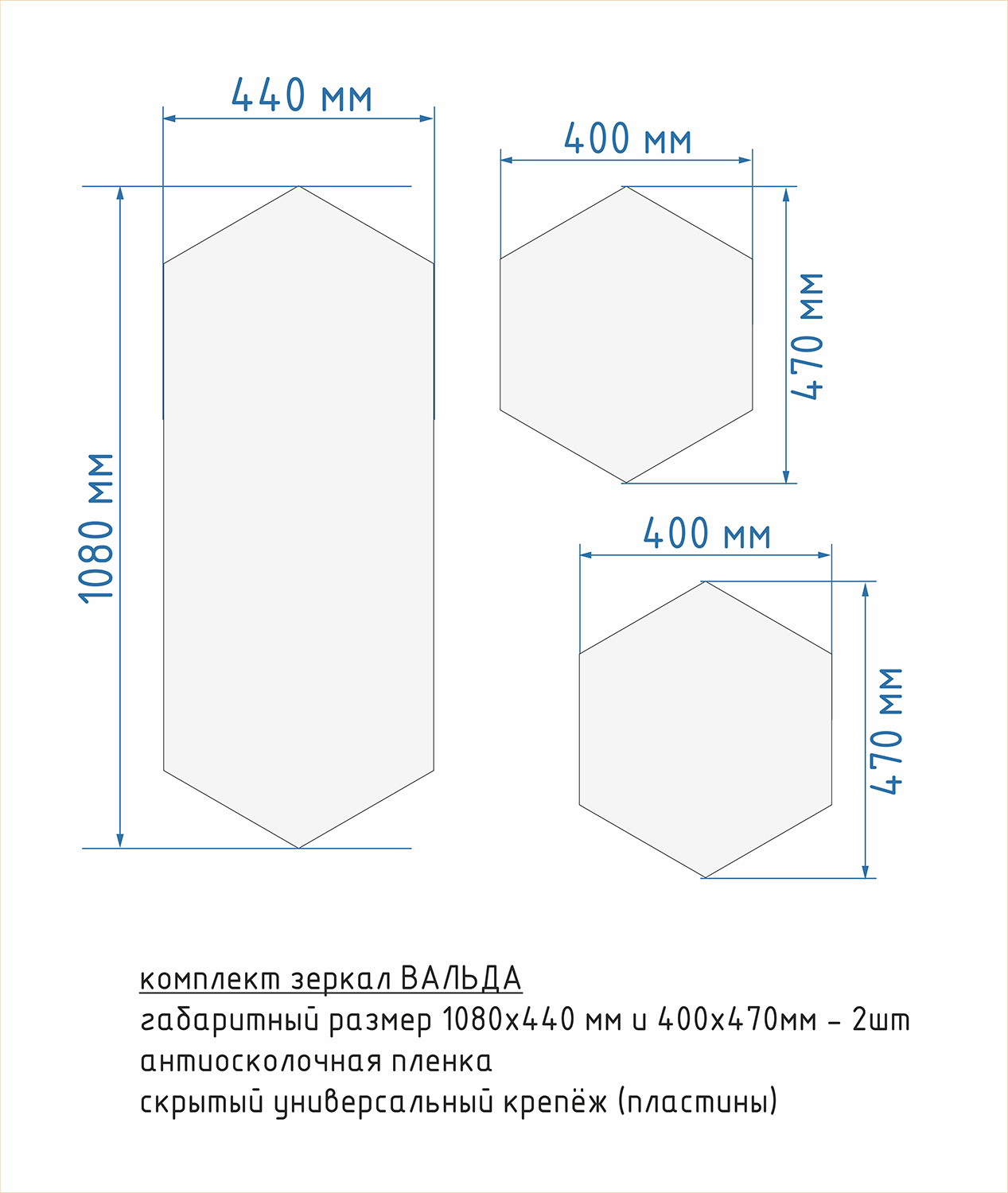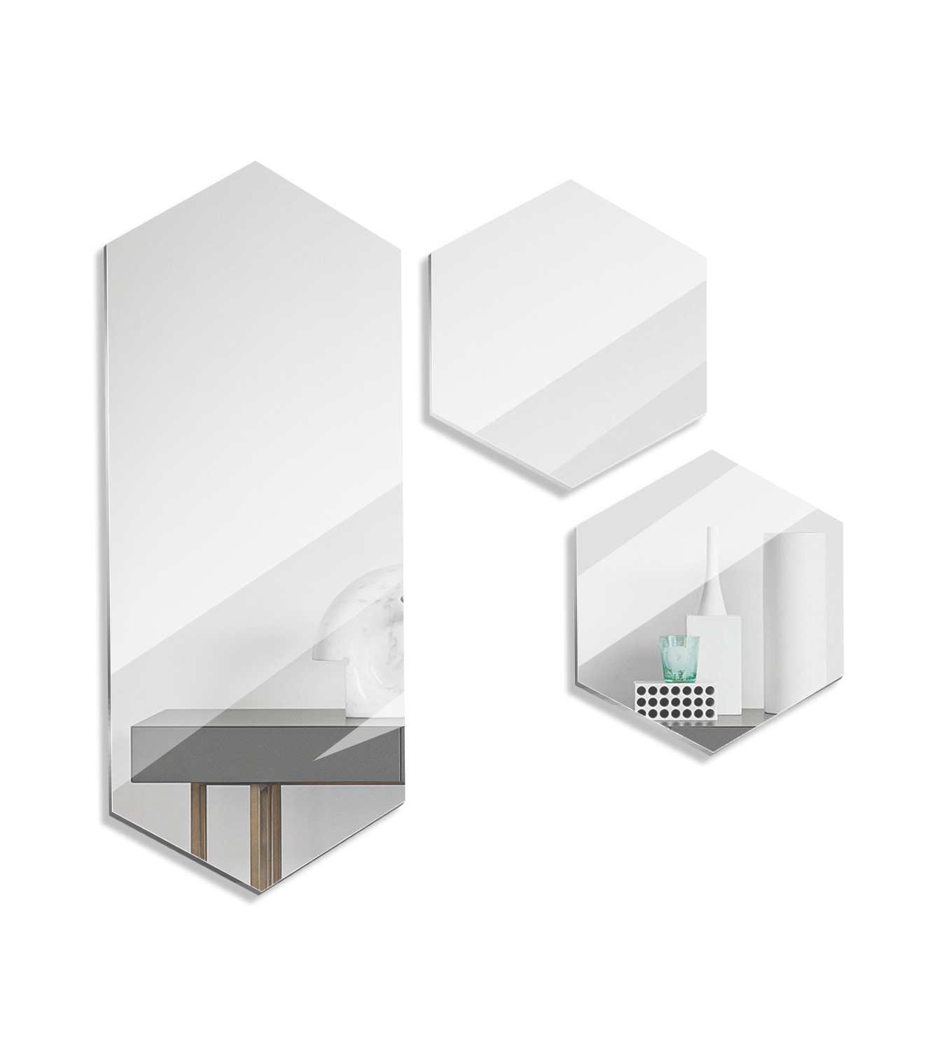 Зеркальное панно Дом Стекла 21 "Комплект "Полуромб вертикальный Серебро" 100х340 мм", 10 шт