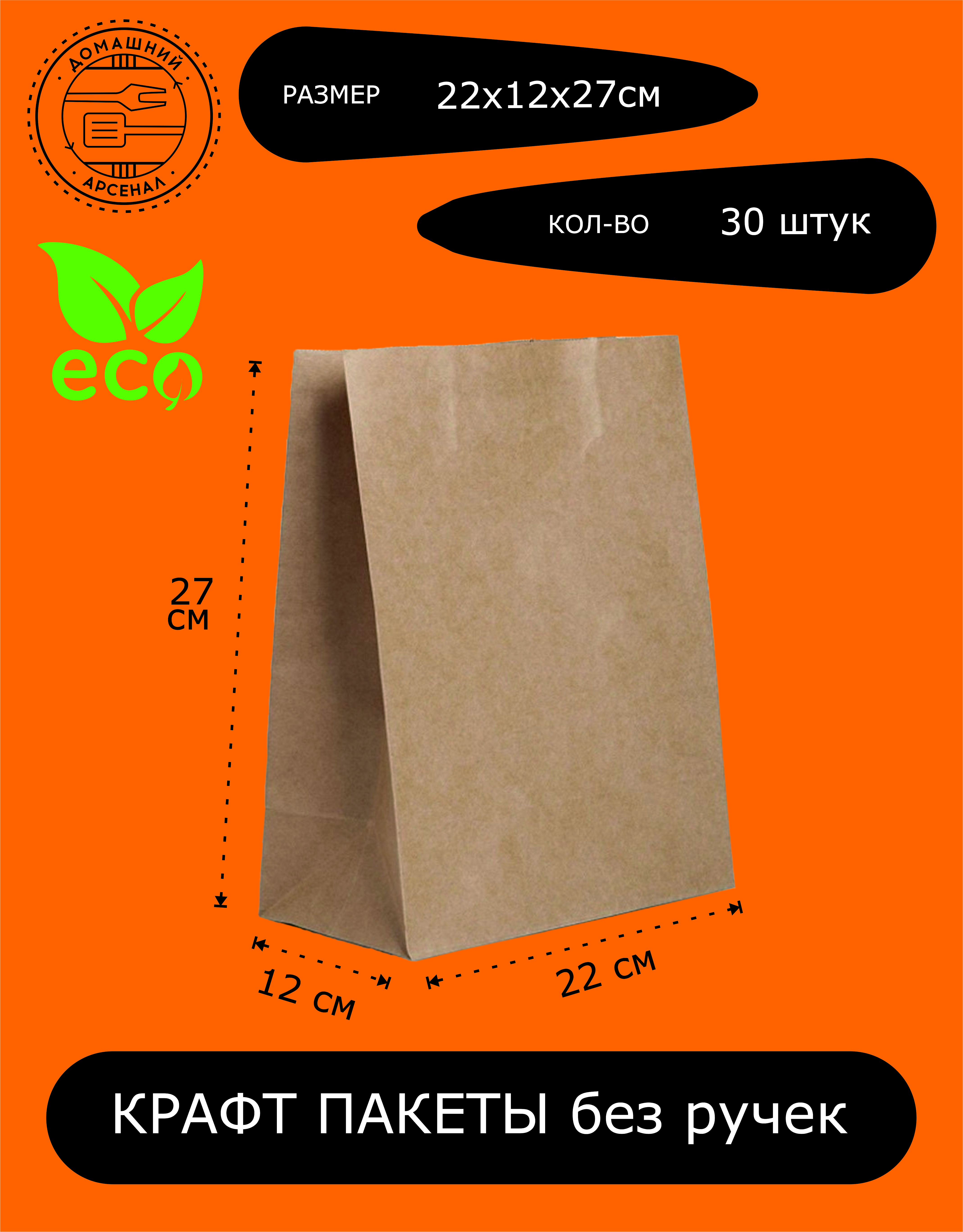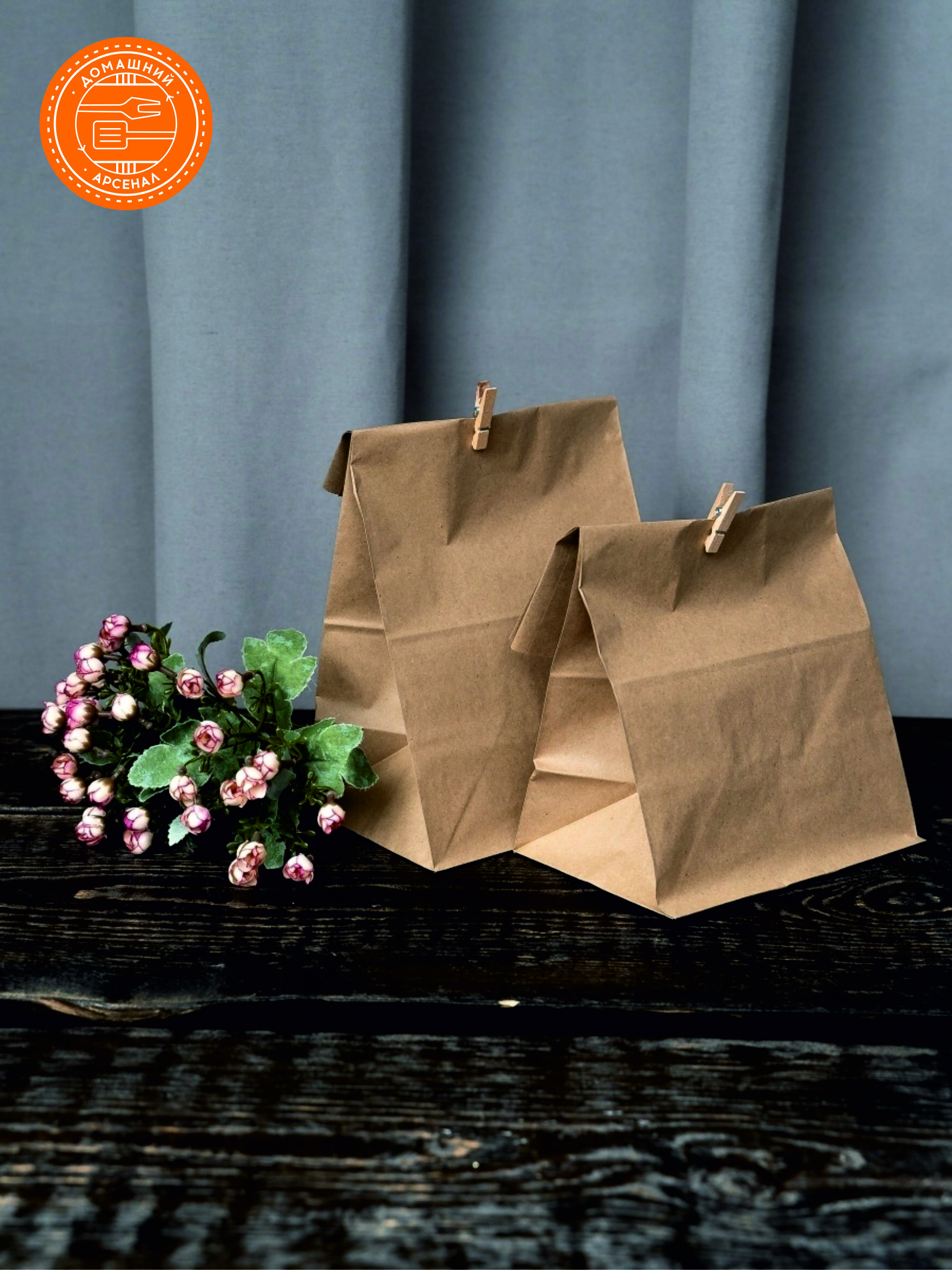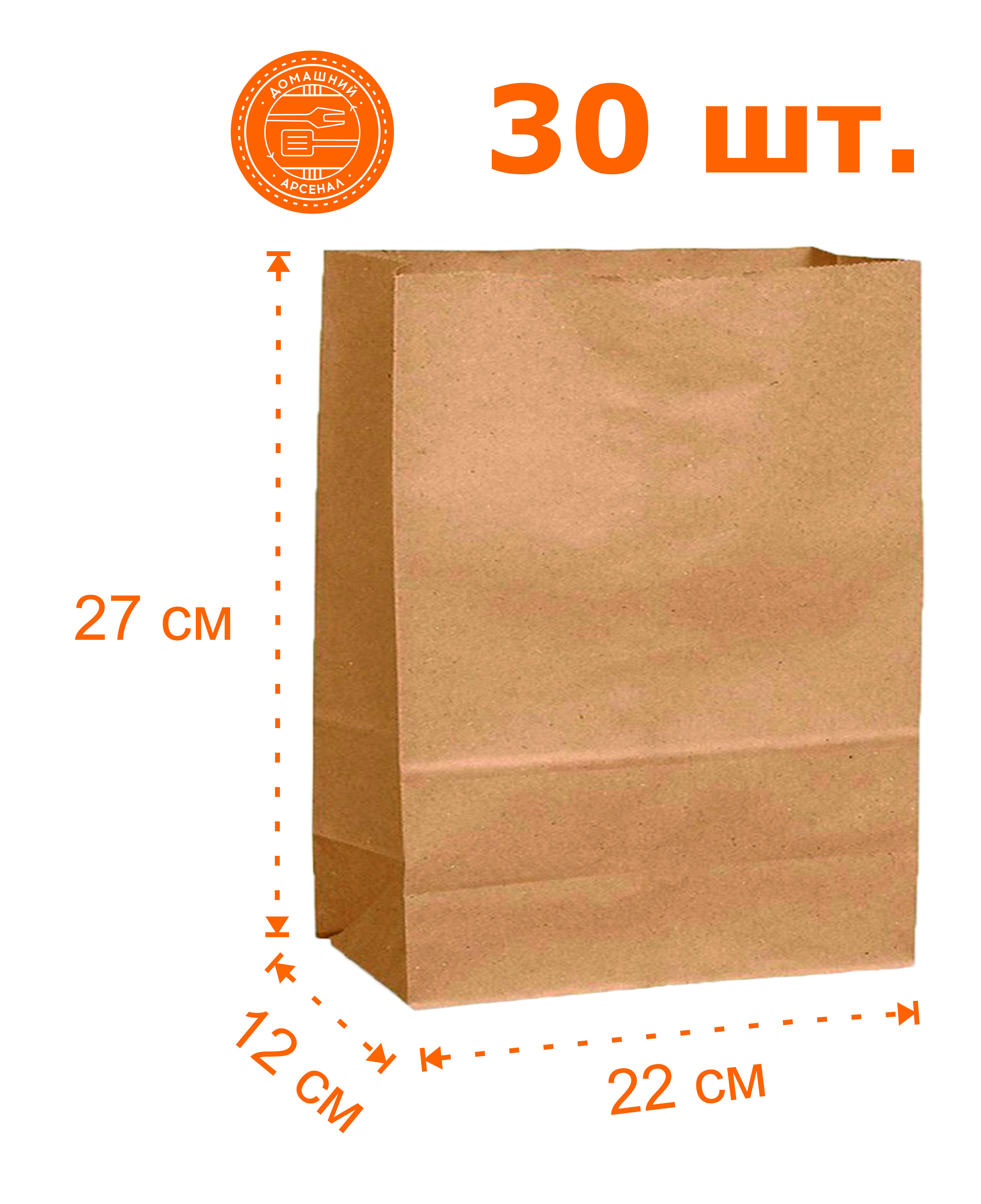 Крафт пакеты бумажные для хранения продуктов, 22х12х27 см, количество 30 штук.