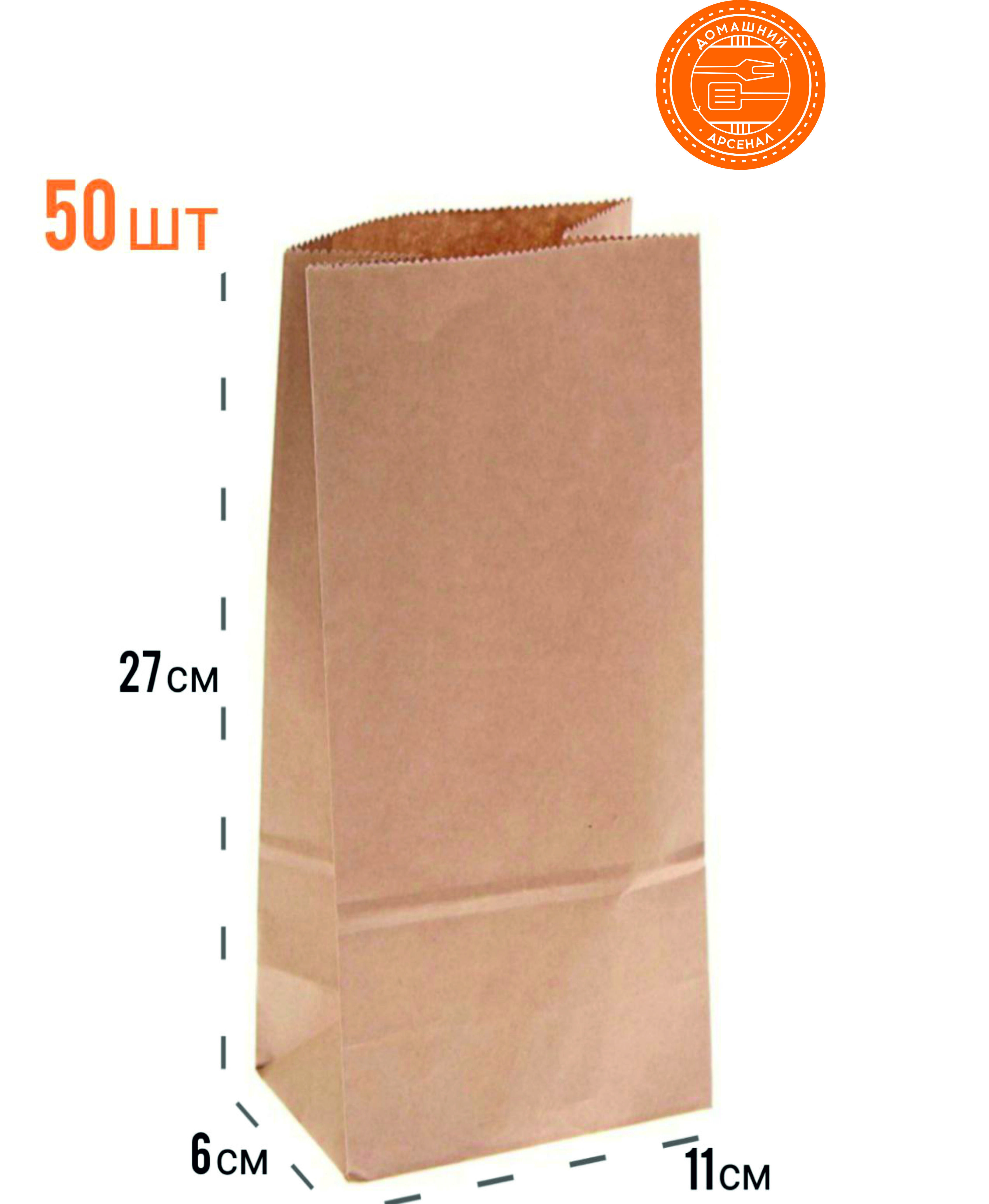 Крафт пакеты бумажные без ручек с прямоугольным дном для хранения продуктов, для упаковки фасовочные 11х6х27 см, 50 штук.