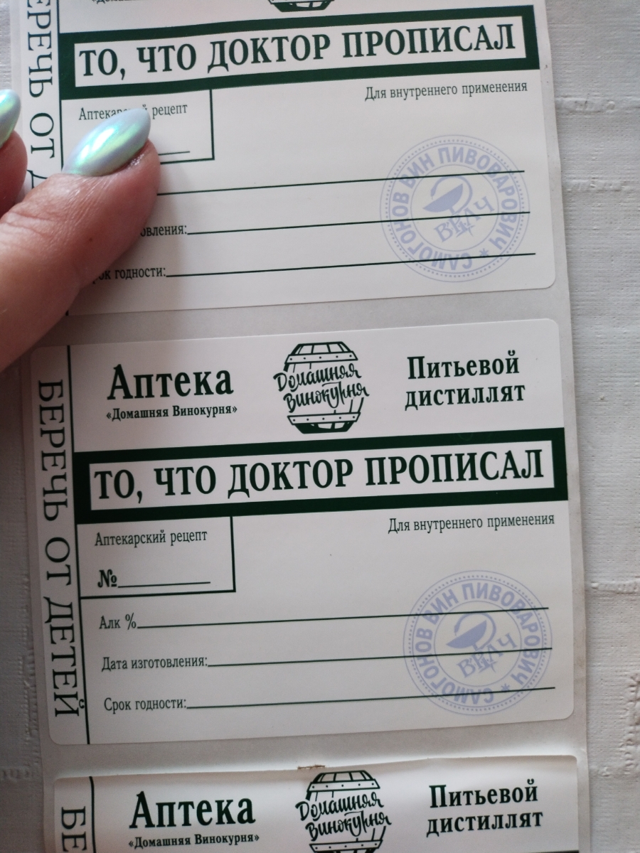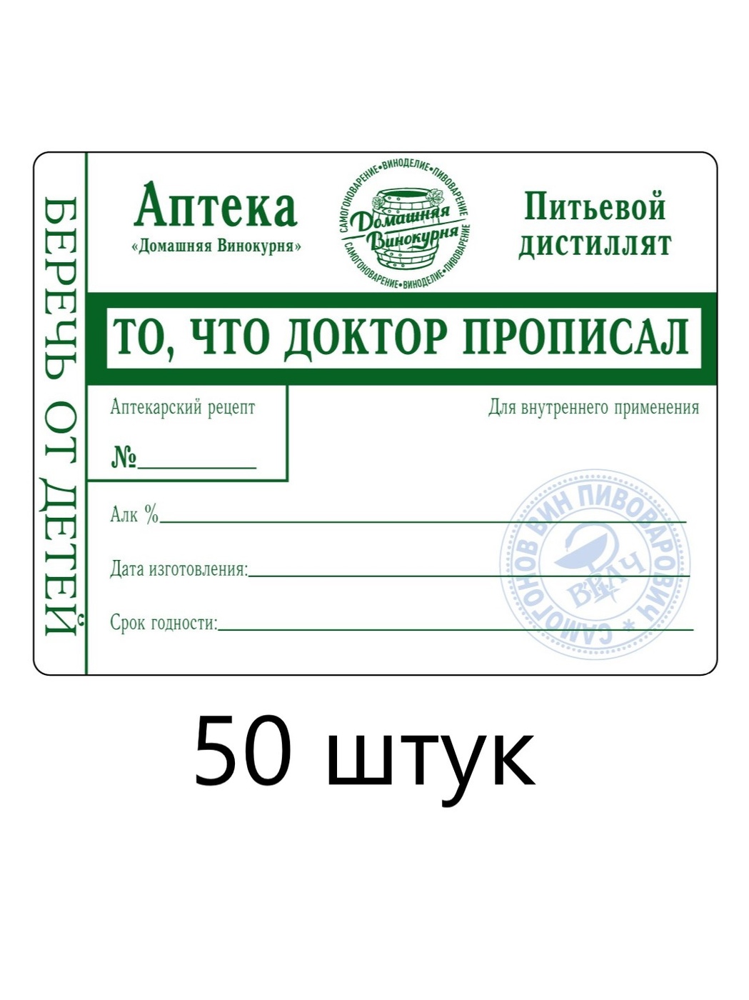 Наклейки на бутылку Что доктор прописал, 50 шт (для настойки, для самогона)