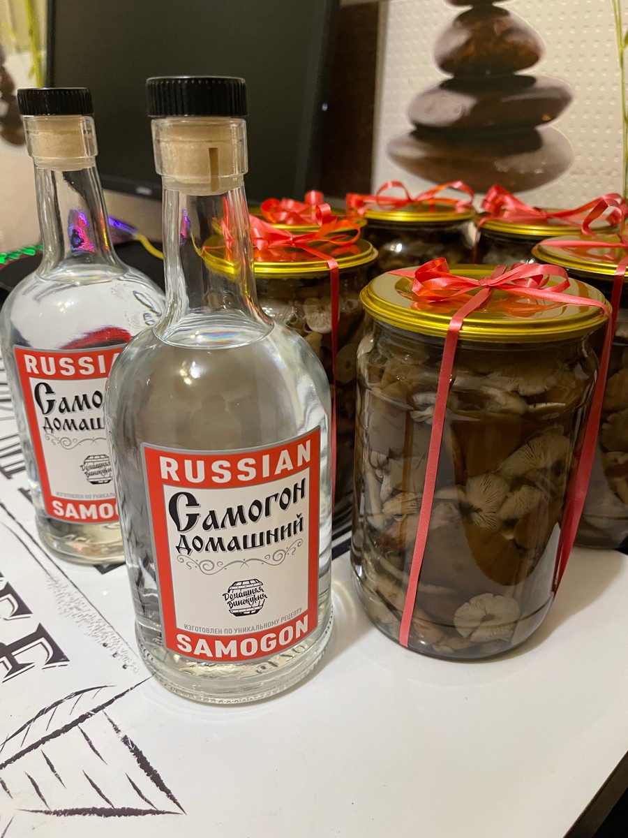 Наклейка этикетка для бутылки "Русский Самогон" (для настойки, дистиллята, самогона)