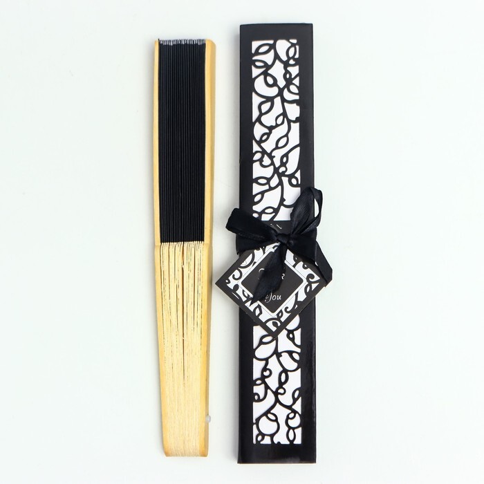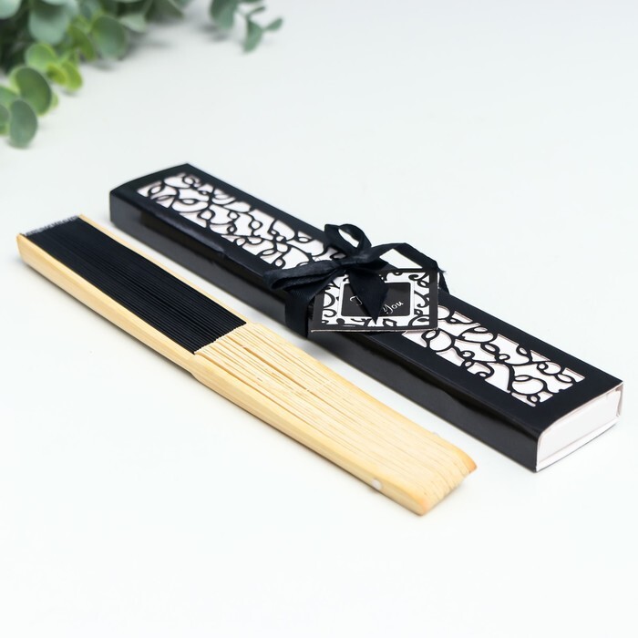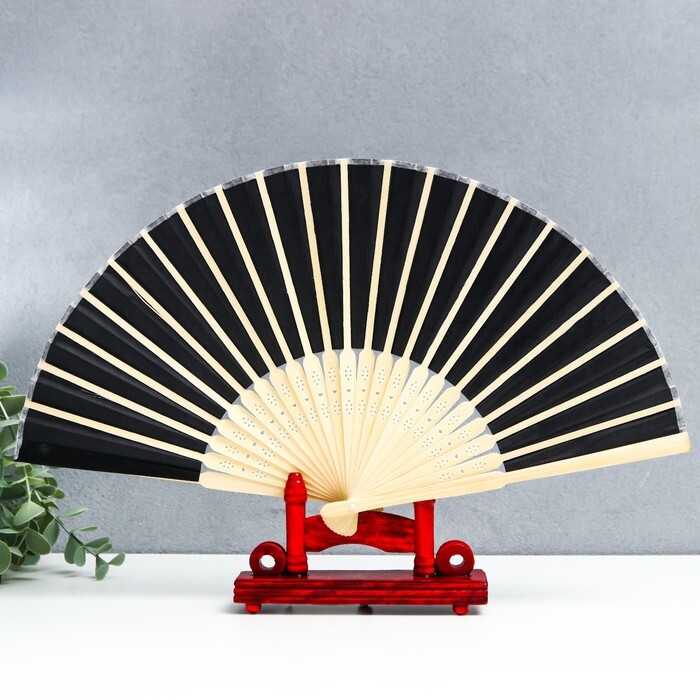 Веер бамбук, текстиль Моноцвет в коробке, чёрный