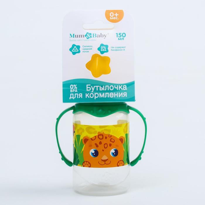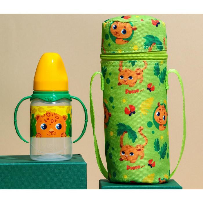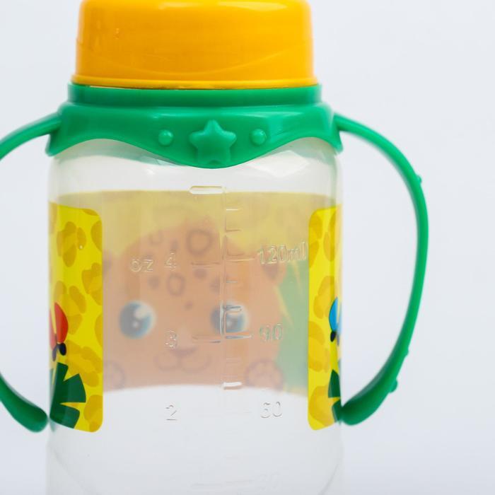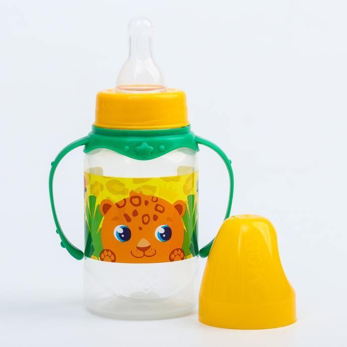 Бутылочка для кормления" Леопард" 150 мл цилиндр, с ручками, цвет желтый
