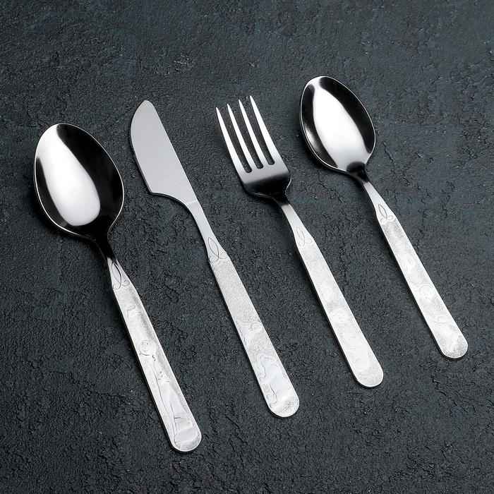 Набор столовых приборов"Колобок", 4 предмета, толщина 1,5 мм