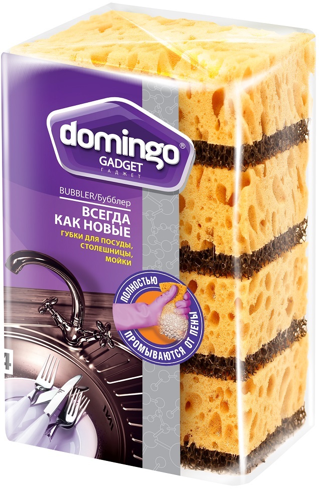 Губка DOMINGO, Пенополиуретан, Абразив, 4 шт.