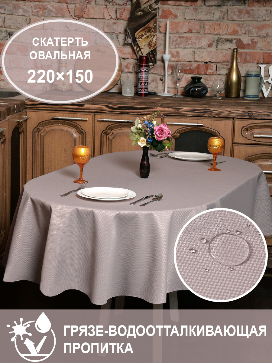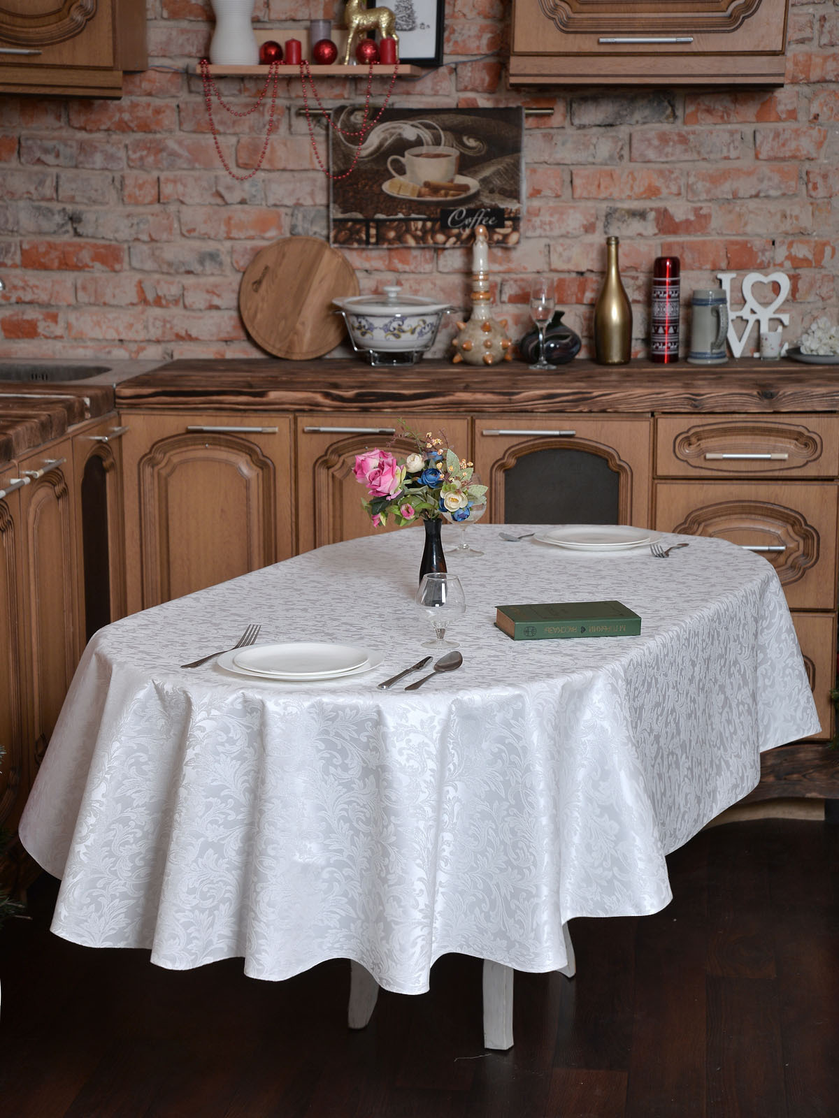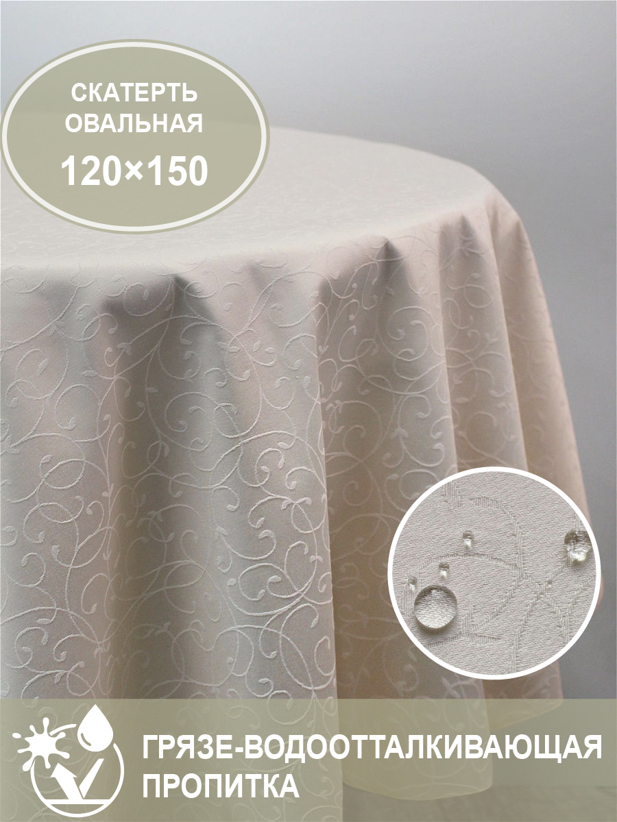Скатерть на стол водоотталкивающая овальная 150х120 см DOMOZON / Коллекция "Узоры в перламутре"