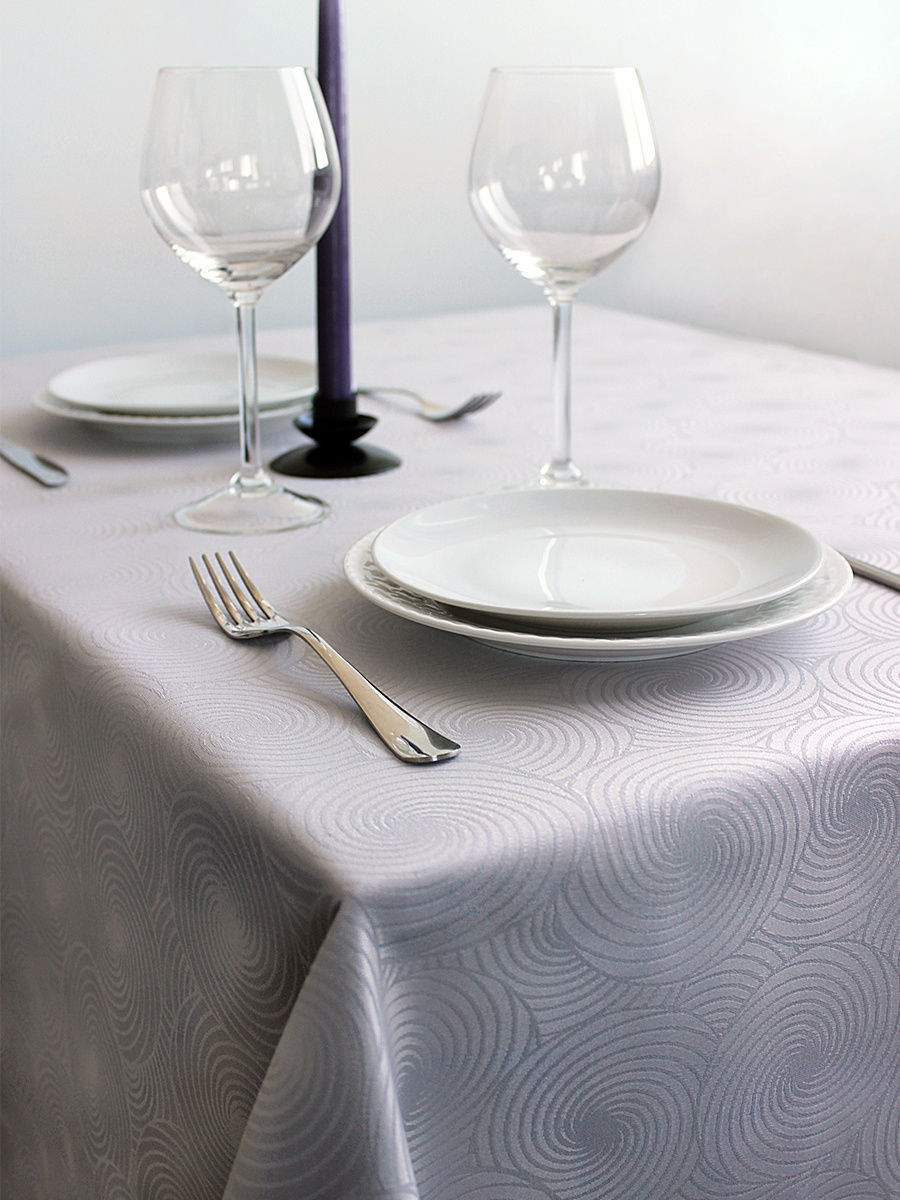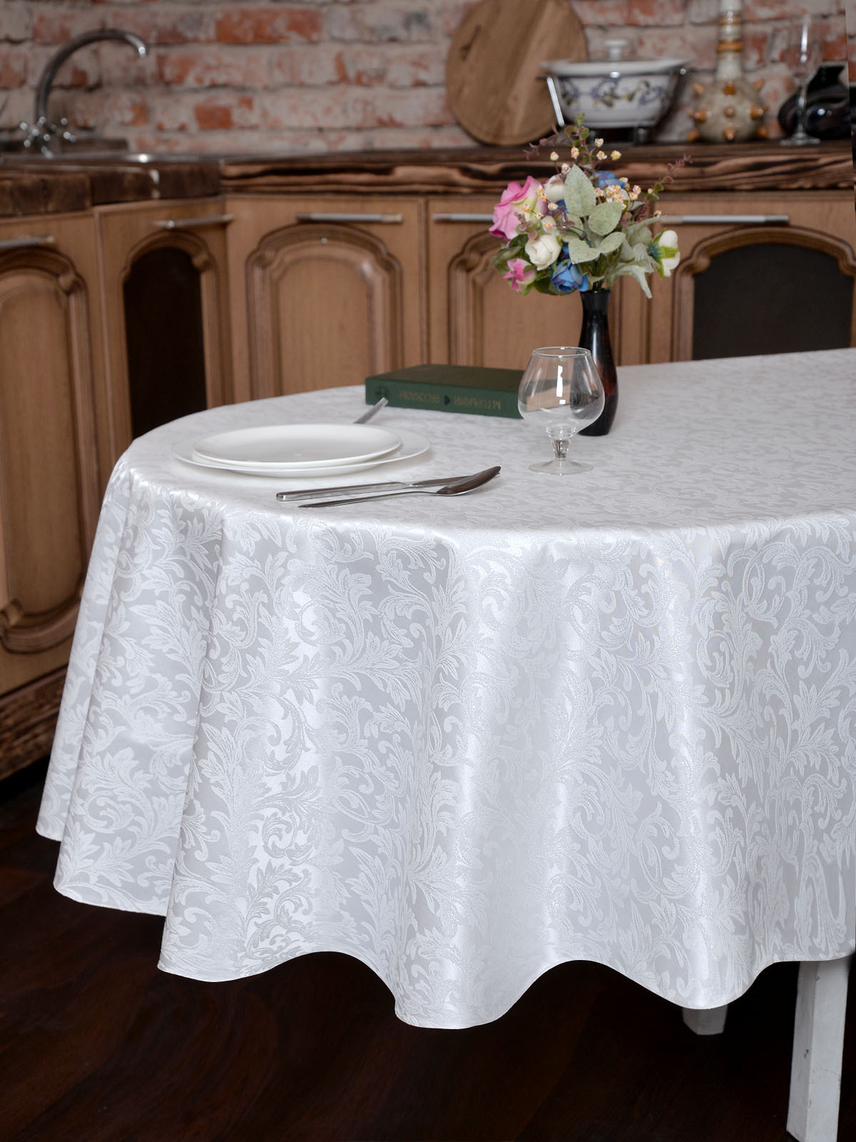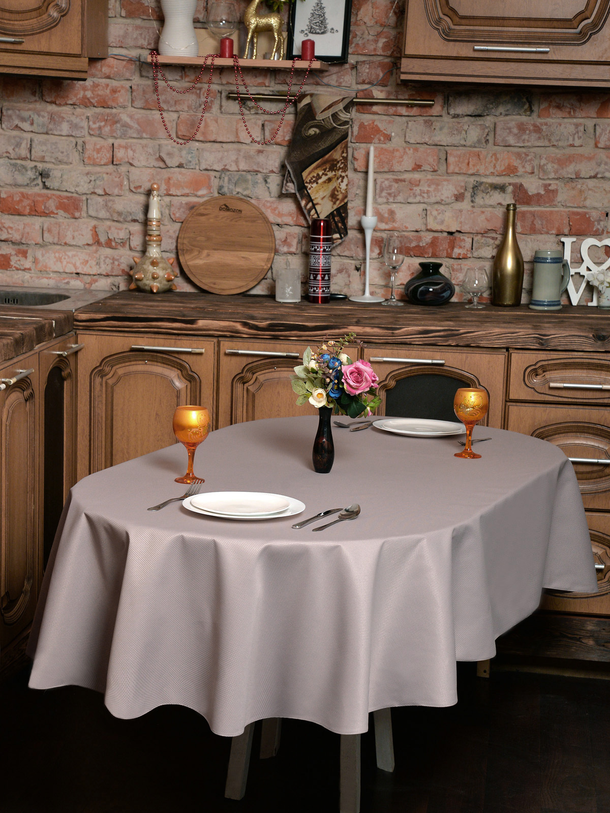 Скатерть на стол водоотталкивающая овальная 150х120 см DOMOZON / Коллекция "Узоры в перламутре"