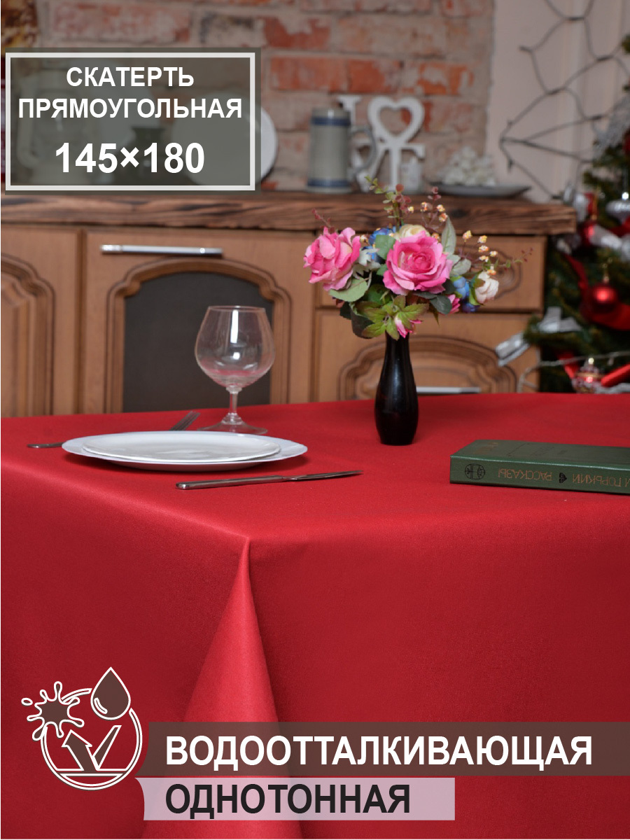 Скатерть на стол водоотталкивающая прямоугольная 145х180 см DOMOZON / Коллекция "ТЕМП красный"