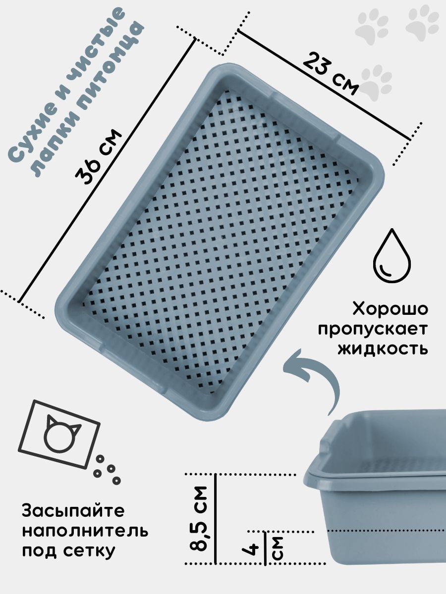 Лоток для кошек с бортом и сеткой 8,5х23х36 см