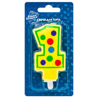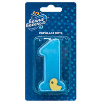 Свеча Цифра 1, Утенок, Голубой, 7,5 см, 1 шт.