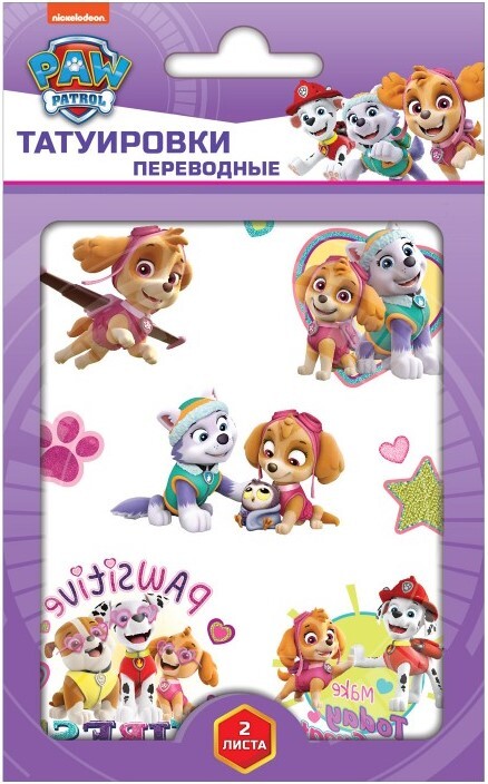 Наклейки-татуировки переводные (временные) Щенячий Патруль, Скай и друзья, 10*12 см, 2 шт.