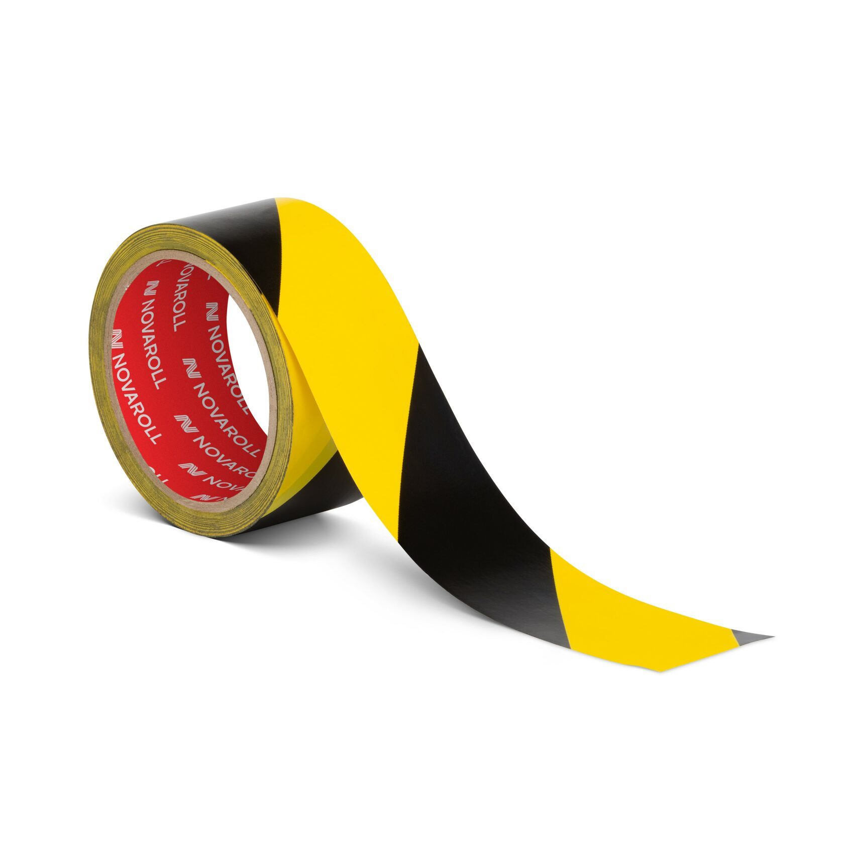 Клейкая разметочная лента (ПВХ+каучуковый клей), черно-желтая, 50мм*50м