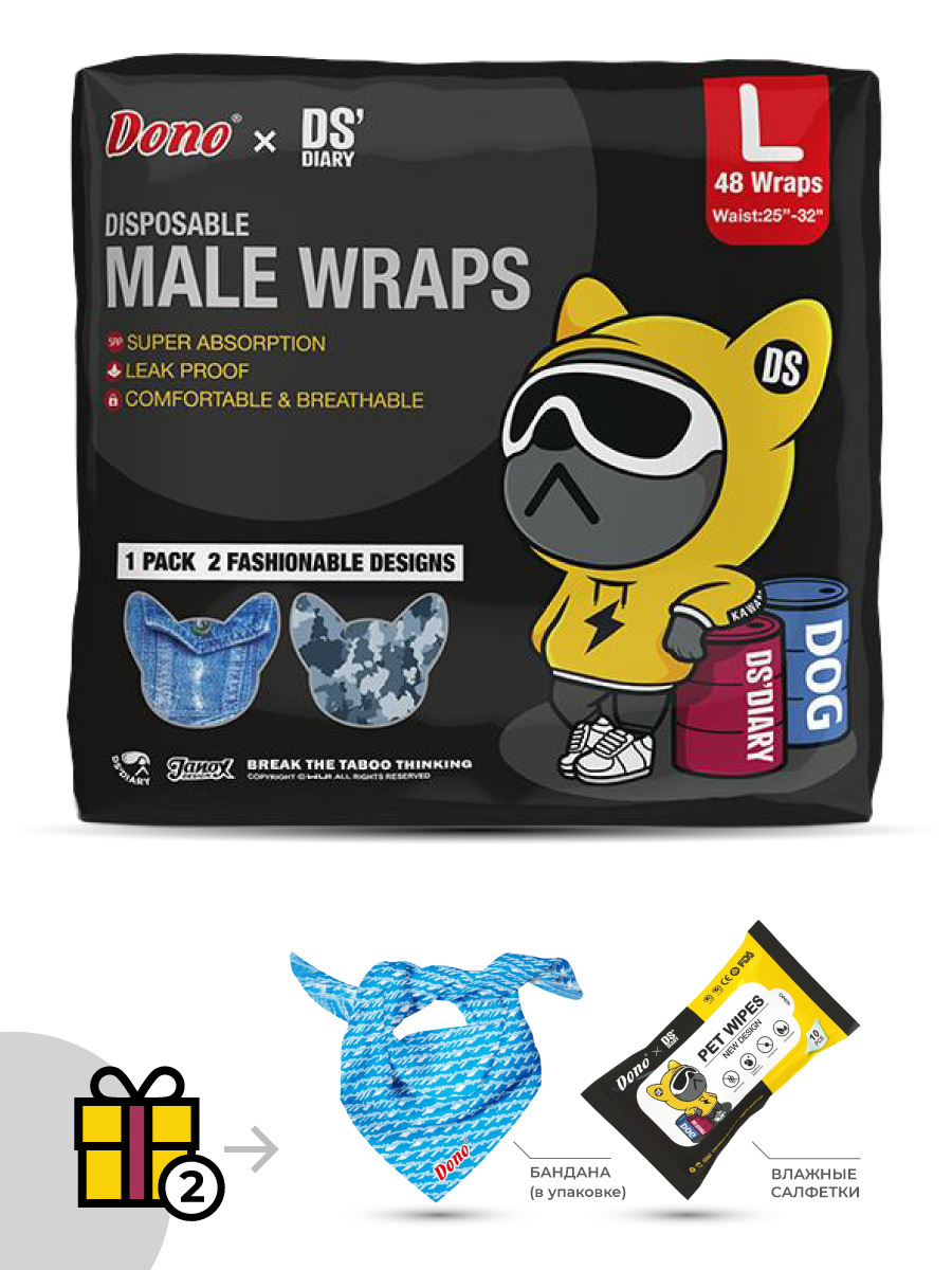 Одноразовые впитывающие пояса для кобелей DONOxDS MALE DOG DIAPERS размер L 48 штук