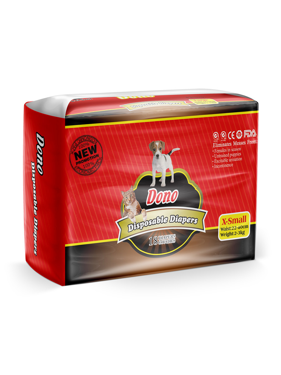 Одноразовые впитывающие подгузники для животных DONO PET DIAPER размер XS 18 штук