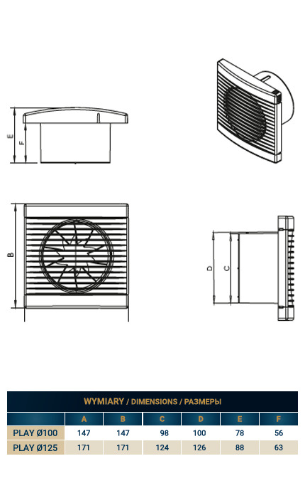 Вентилятор вытяжной бесшумный Play classic 100 S DOSPEL D100