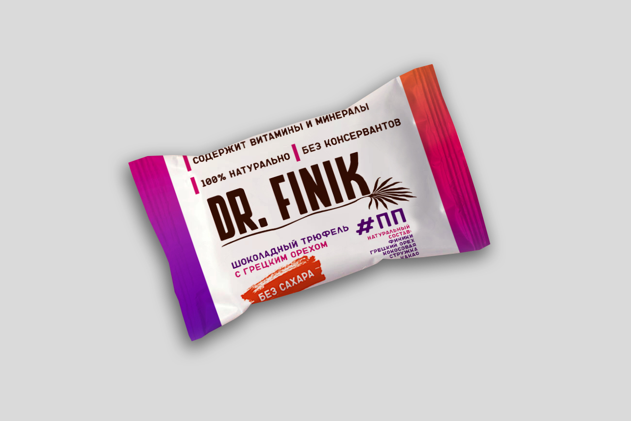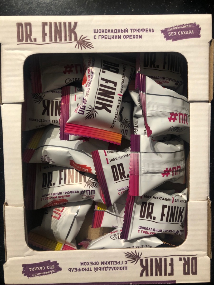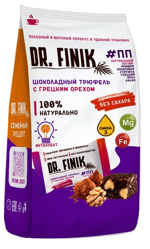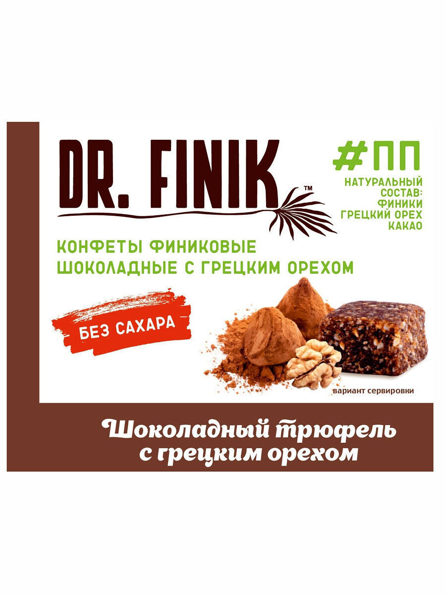 Полезные конфеты финиковые "Шоколадный трюфель с грецким орехом" Dr. Finik пакет 150 г без сахара