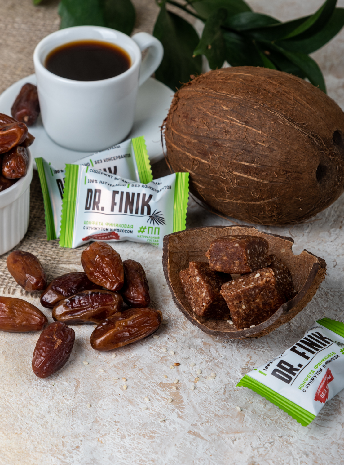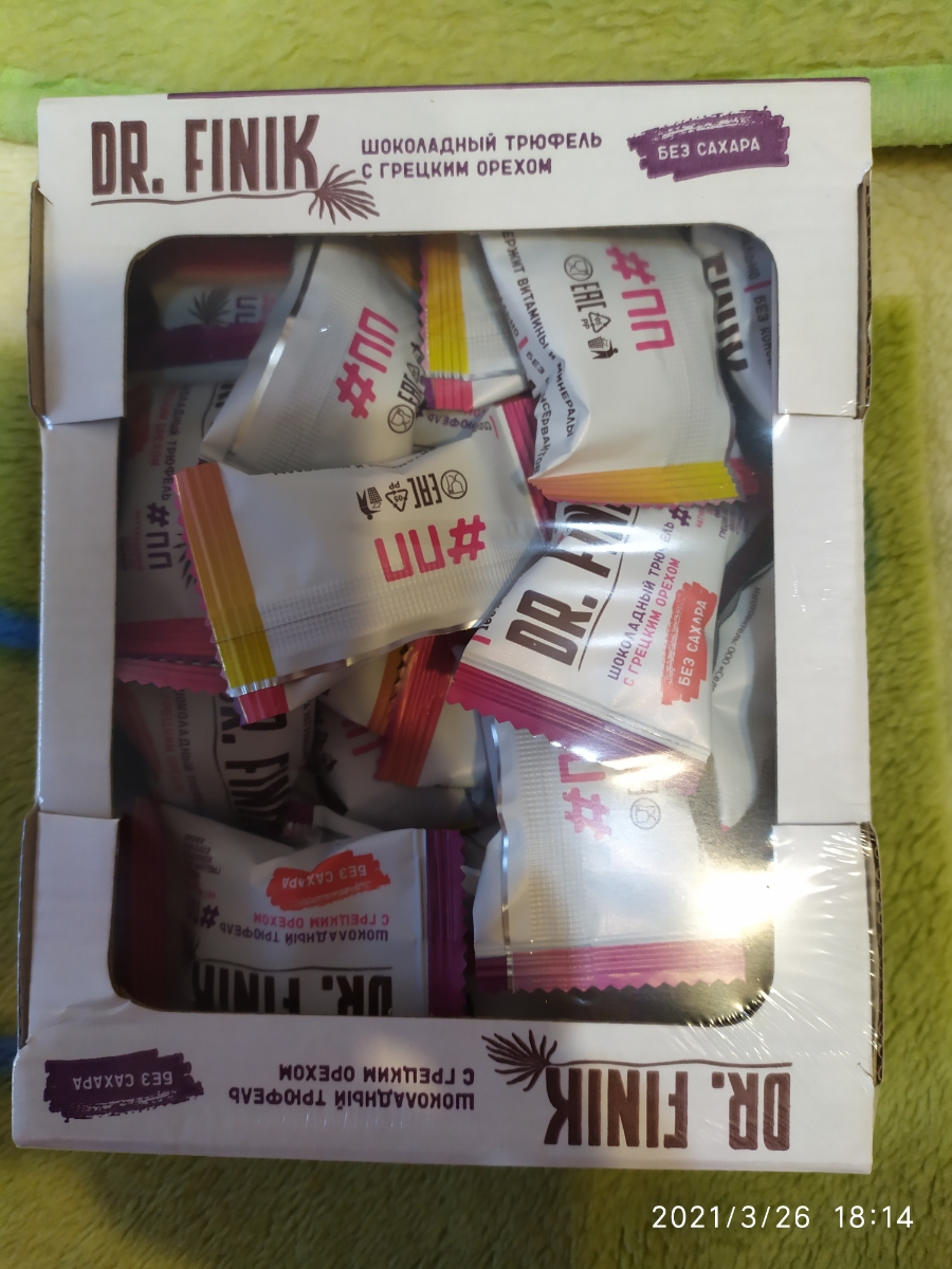 Dr. Finik, Трюфельные батончики с миндалем без сахара, пакет 150 г, полезные конфеты, суперфуд