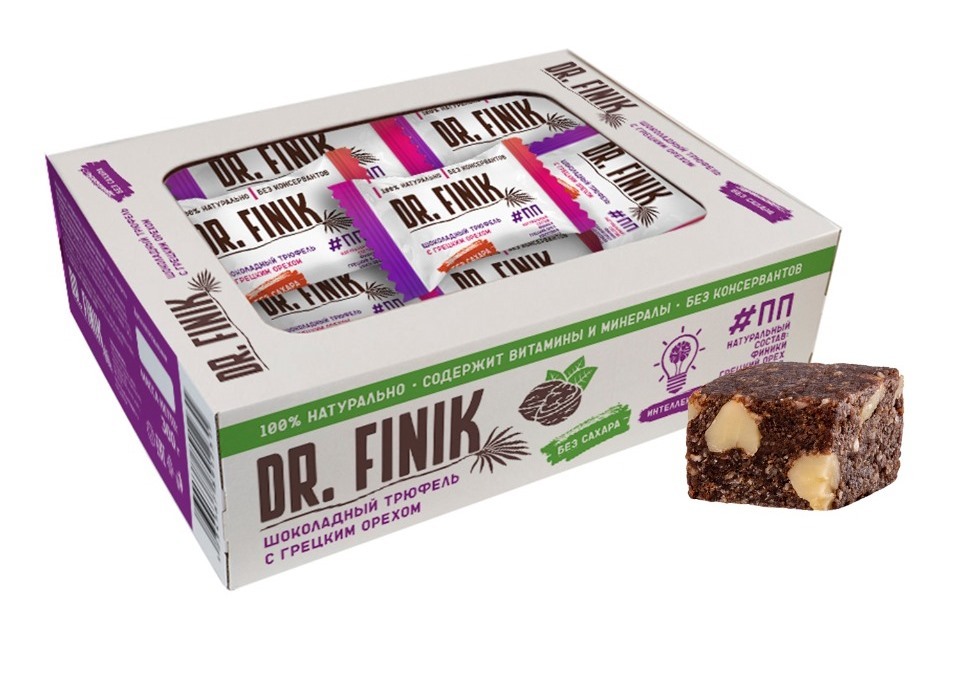 Полезные батончики финиковые "Шоколадный трюфель с грецким орехом" Dr. Finik 300 г без сахара