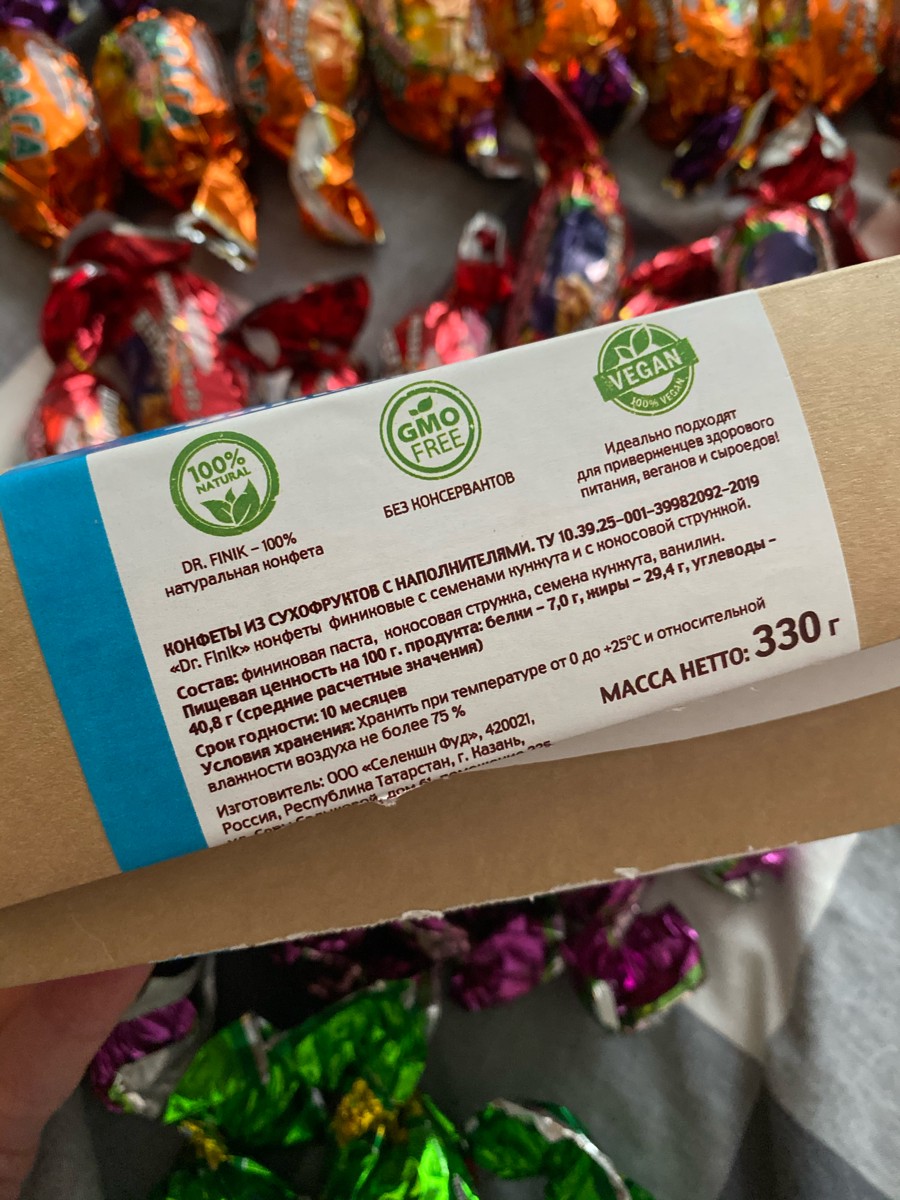 Полезные конфеты финиковые "Шоколадный трюфель с фундуком " Dr. Finik коробочка 330 г без сахара