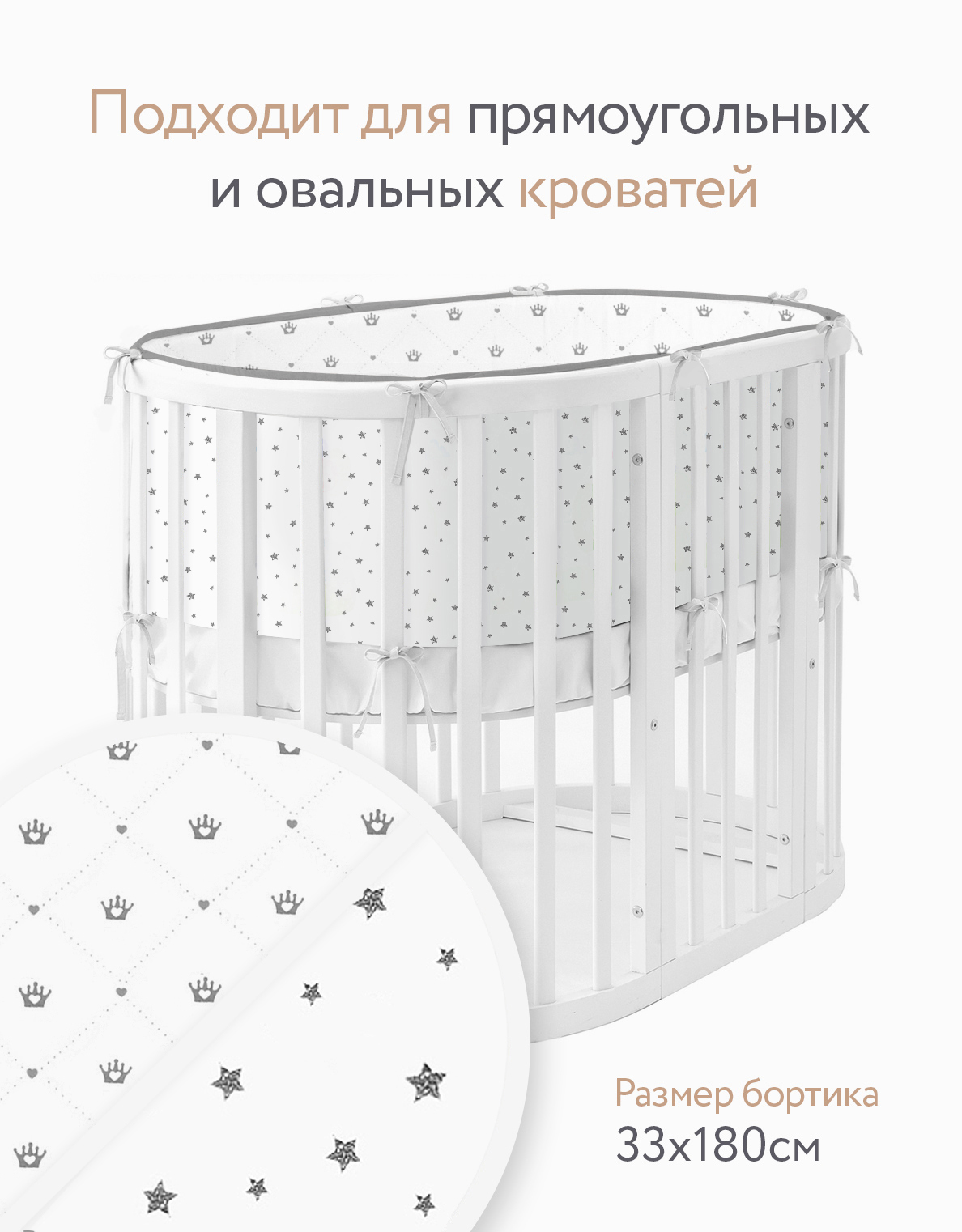 Бортики для детской кровати со съемным чехлом /Тонкий дышащий борт в детскую кроватку/ бампер