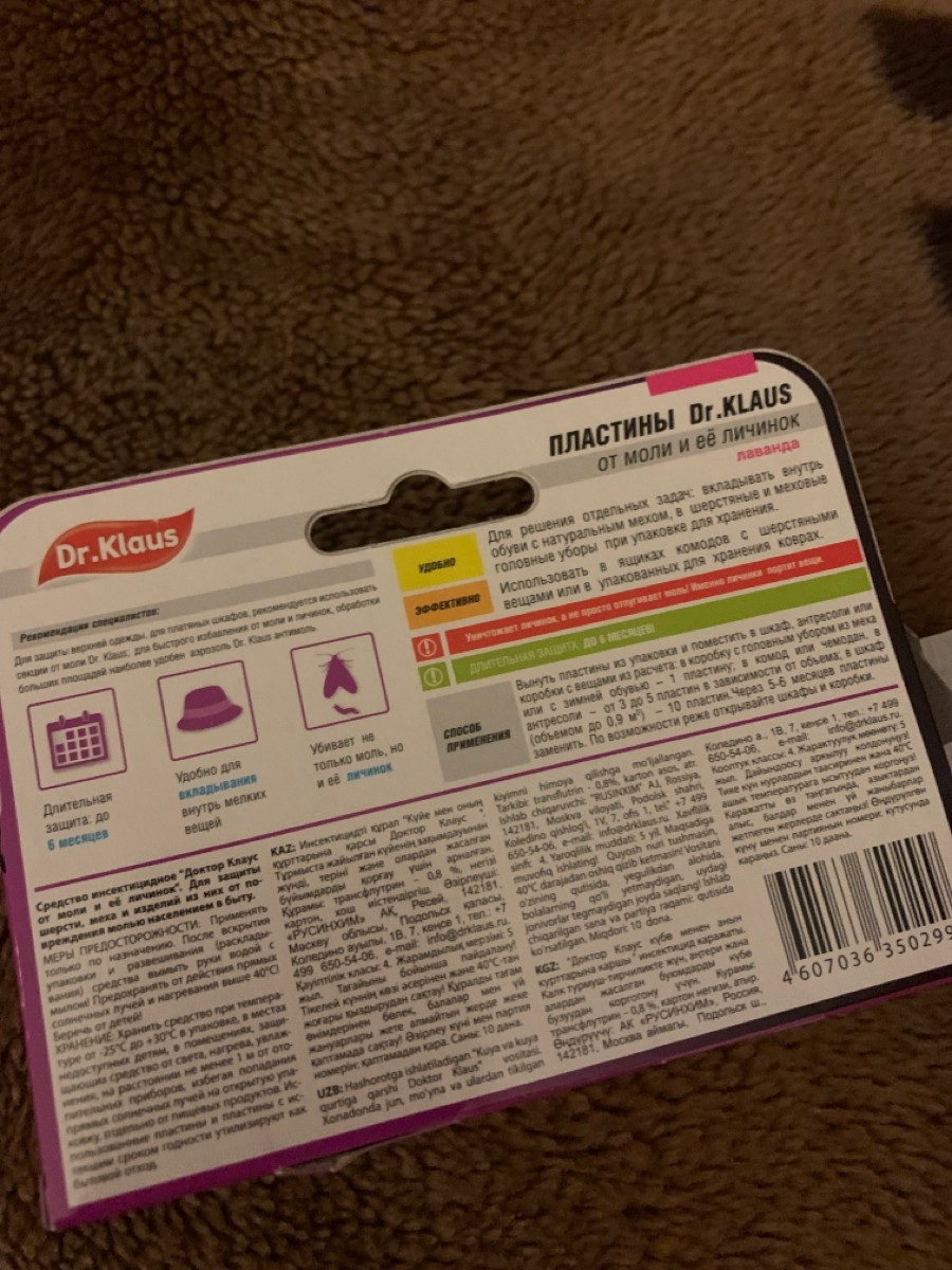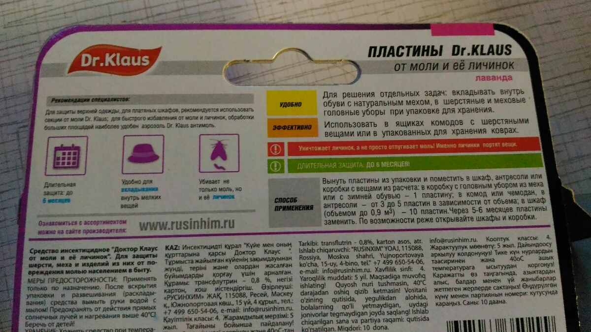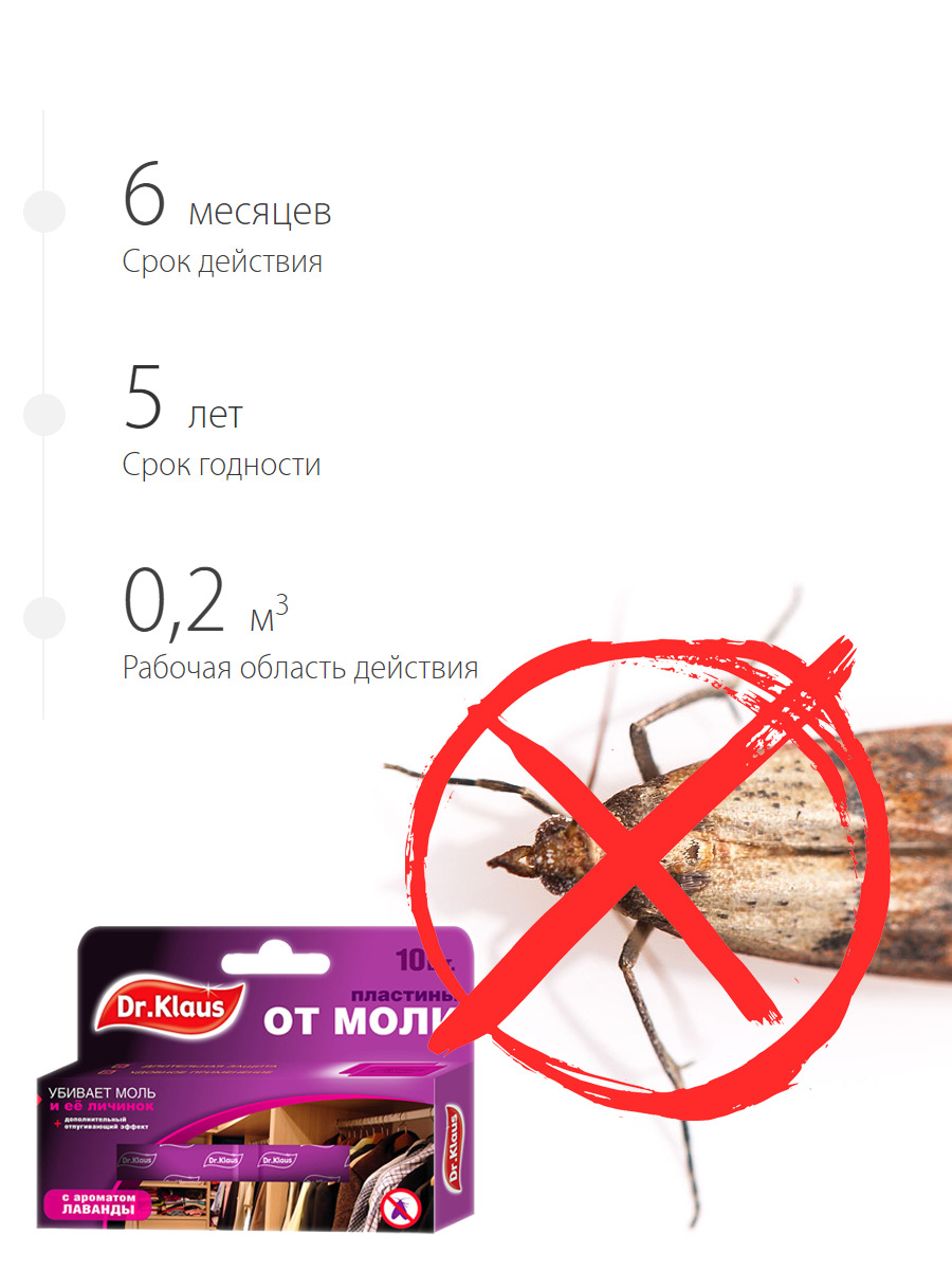 Dr.Klaus (Доктор Клаус) пластины от моли (без запаха), 10 пластин 1 шт