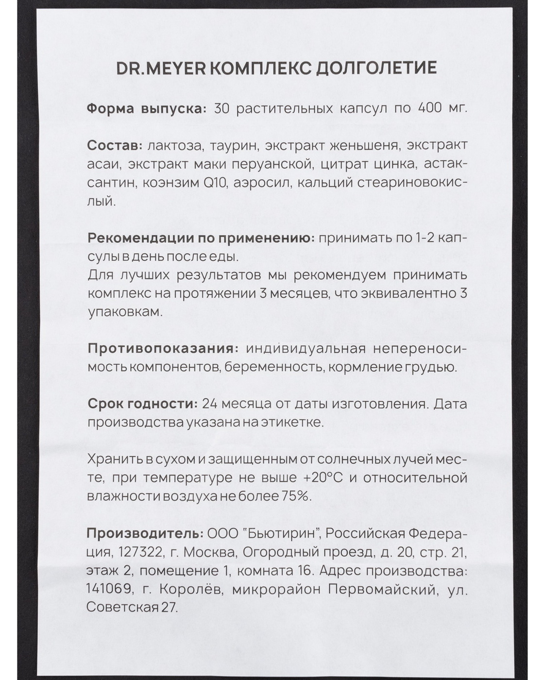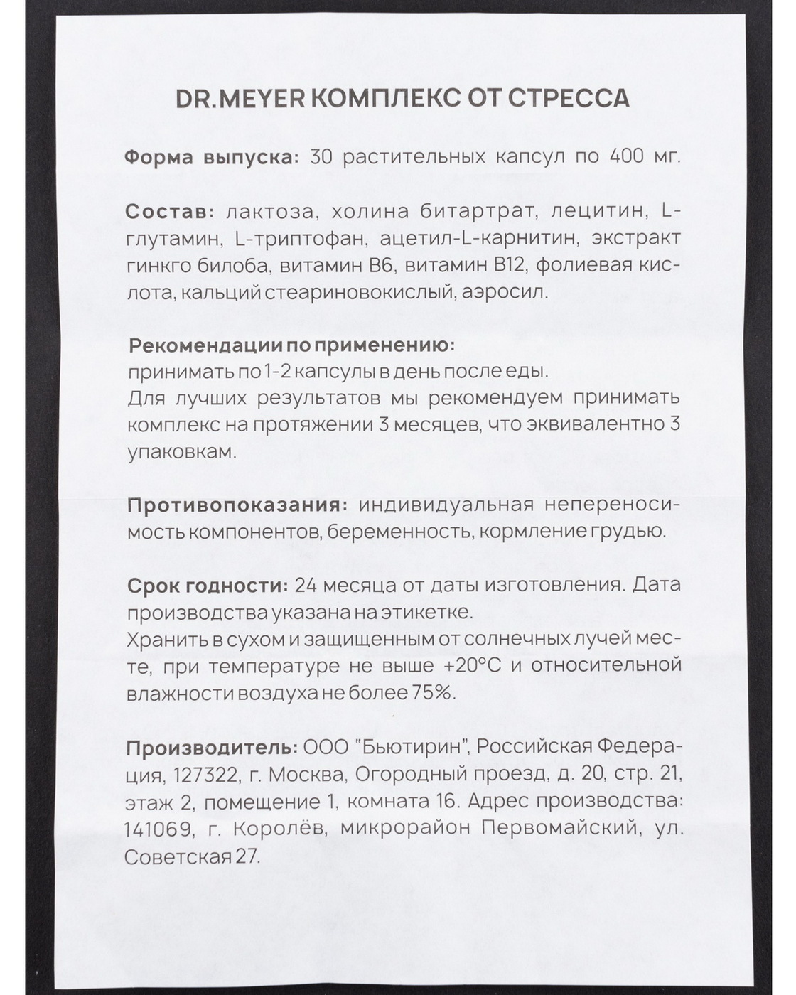 Пищевая добавка против стресса хронической усталости бессоницы 1уп 30шт