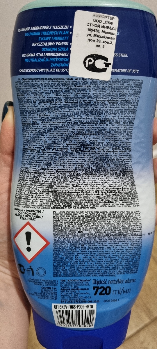 dr.Prakti Гель для посудомоечных машин, 720мл.. Уцененный товар