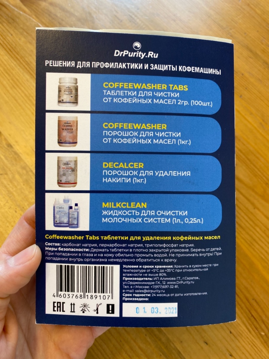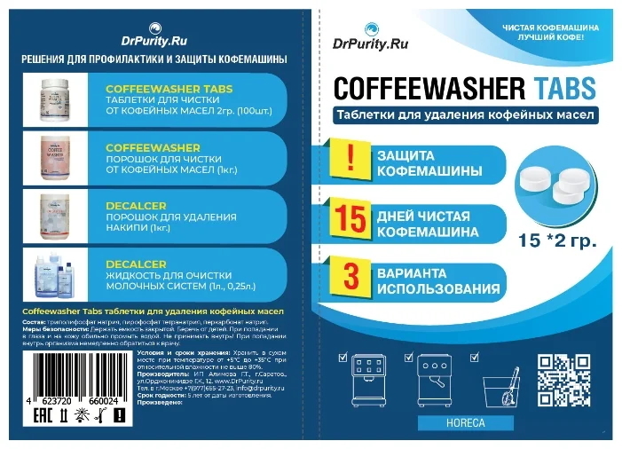 Таблетки для чистки от кофейных масел dr.Purity Coffee Washer TABS 15