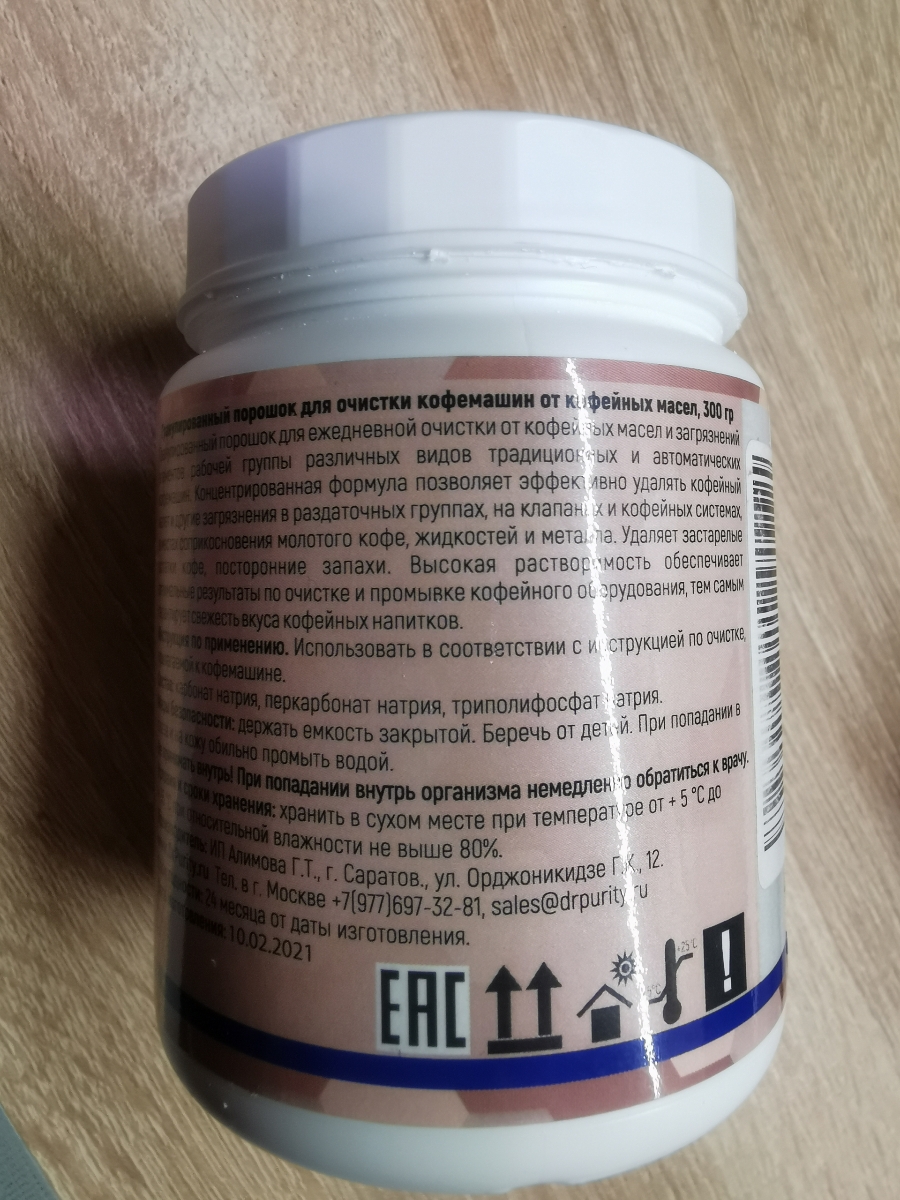 Чистящее средство от кофейных масел для кофемашины и холдера DrPurity Coffee Washer, порошок, 300 г.