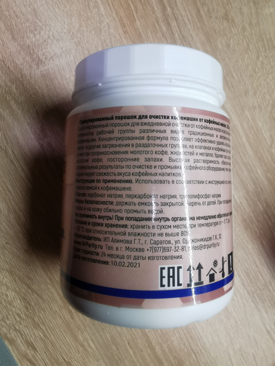 Порошок для чистки кофемашин от кофейных масел dr.Purity Coffee Washer 1кг
