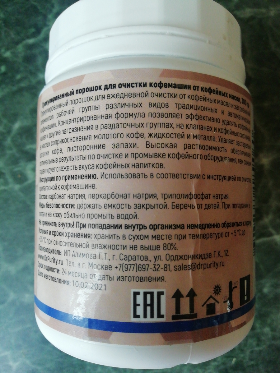 Порошок для чистки от кофейных масел dr.Purity Coffee Washer 300 gr.