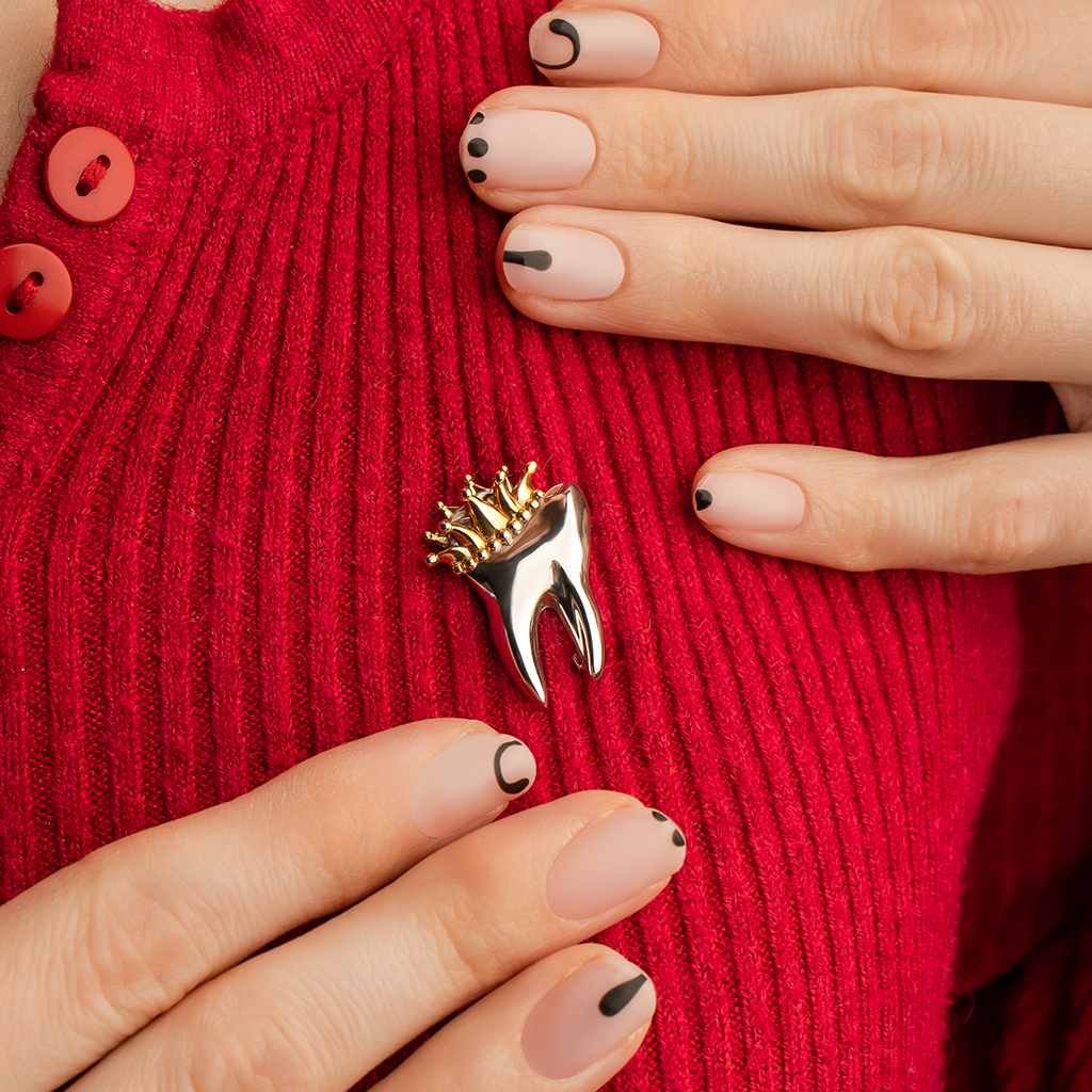 Dr.Vorobev Брошь Зуб с короной №2 с локальной позолотой