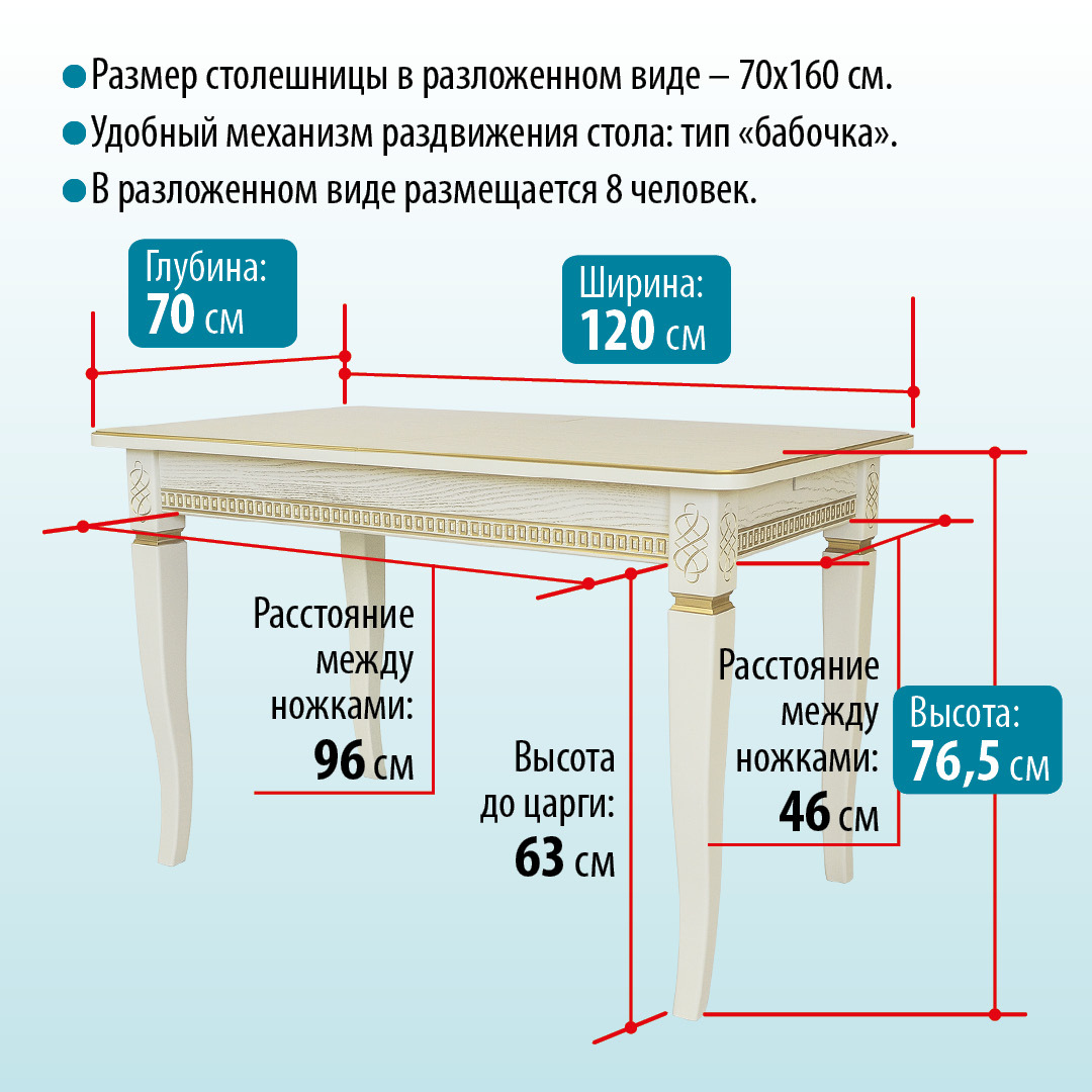 Стол обеденный Раздвижной Роял 1Р, 120х70х76.5 см