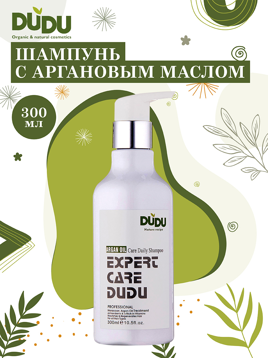 DUDU Шампунь безсульфатный с аргановым маслом, с пантенолом, для сухих, пористых и поврежденных волос. 300мл