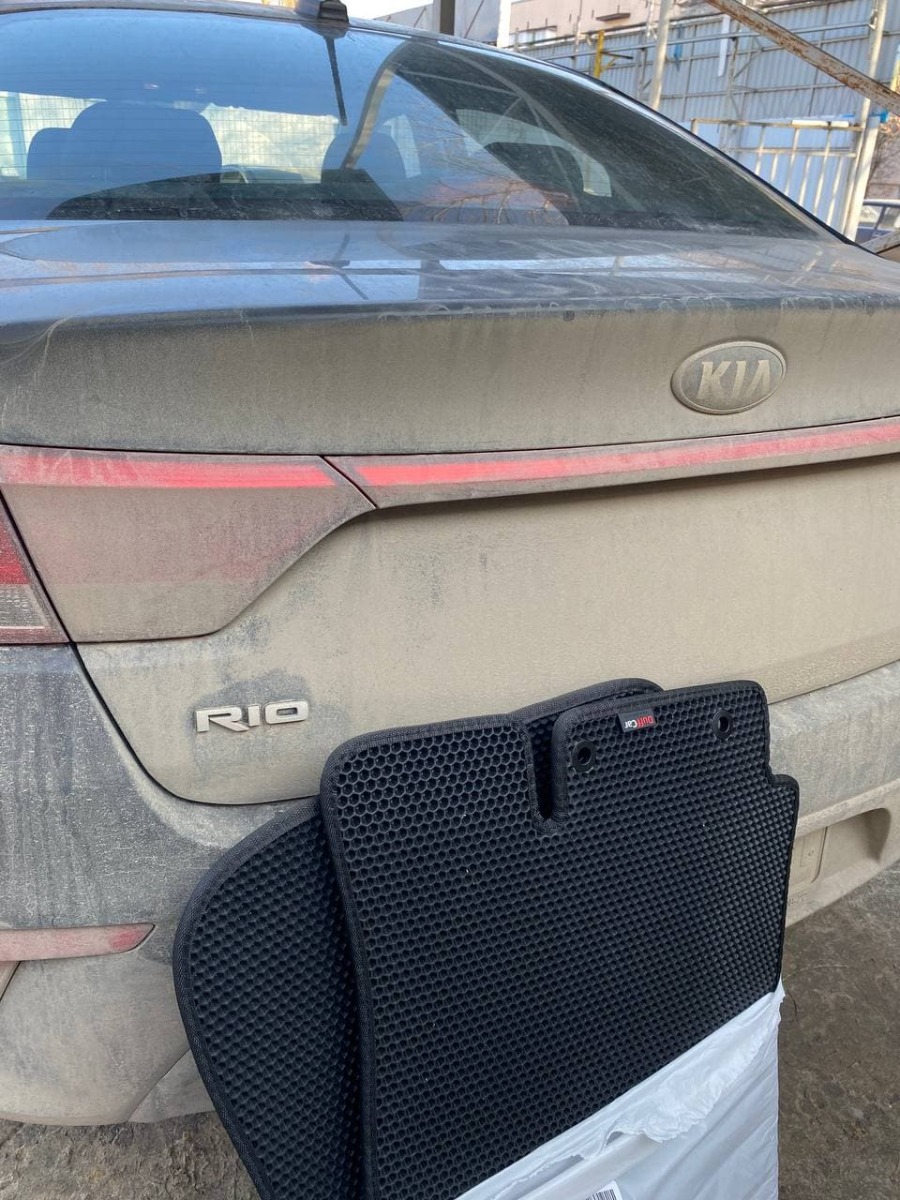 Автомобильные коврики EVA в салон Kia Rio IV (FB) Седан (2017 - ...) / Киа Рио 4 / черная сота с черным кантом / автоковрики от DuffCar