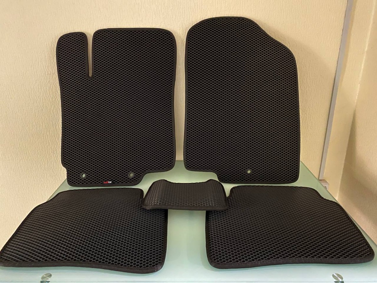 Автомобильные коврики EVA в салон Kia Rio III (QB) Седан (2011 - 2017) / черный ромб с черным кантом / автоковрики от DuffCar