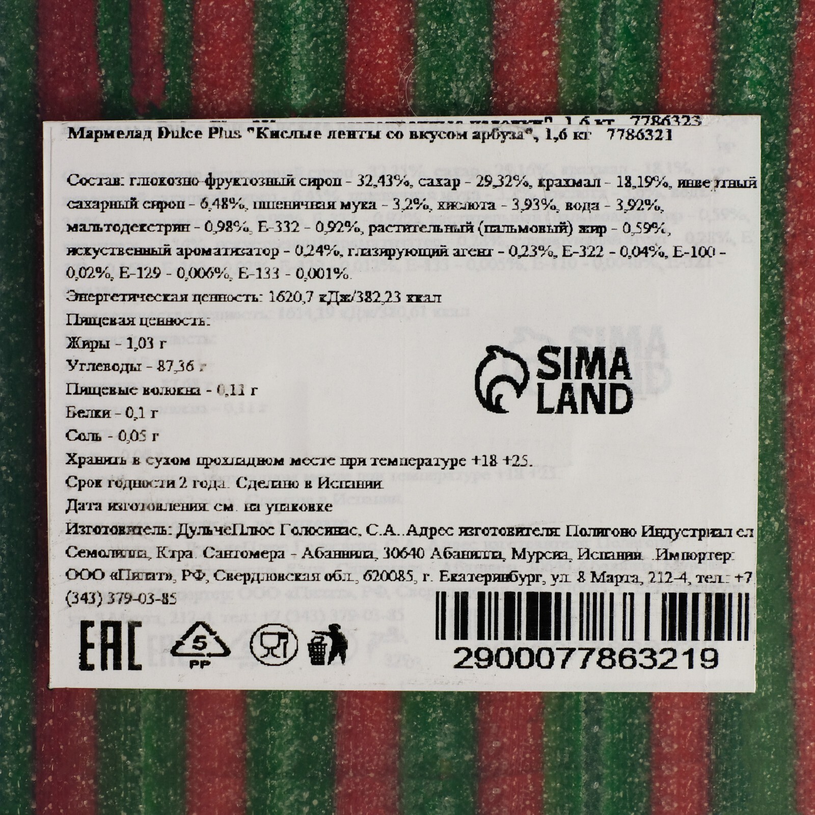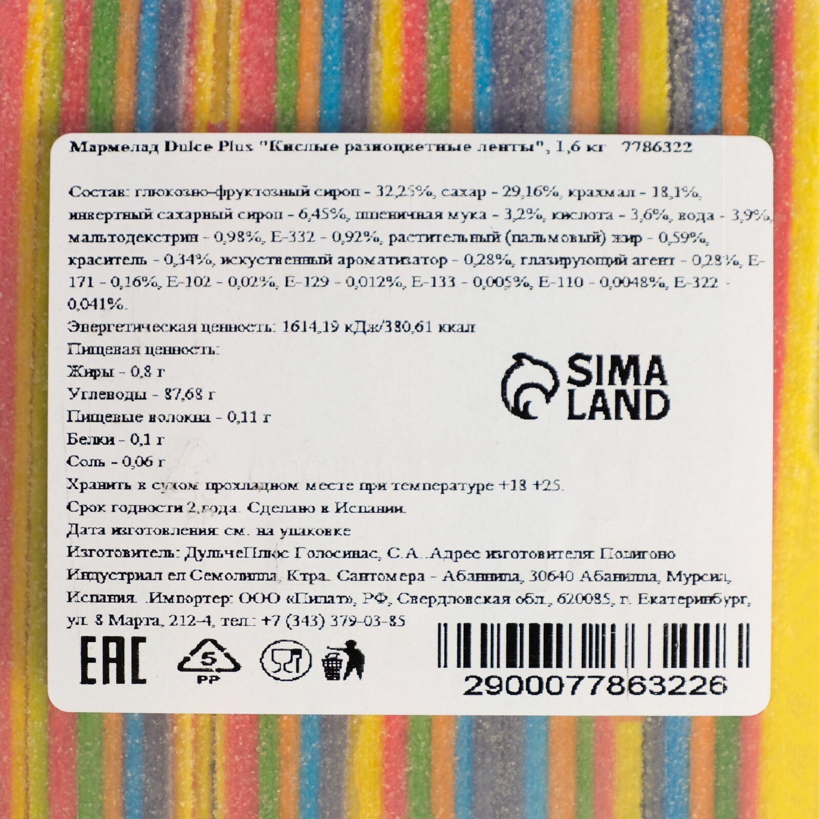 Мармелад Кислые разноцветные ленты, 1,6 кг