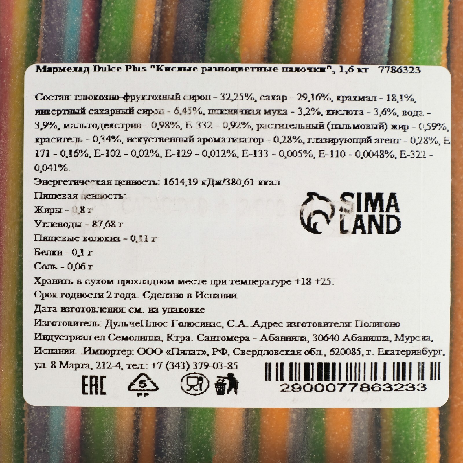 Мармелад Кислые разноцветные палочки, 1,6 кг
