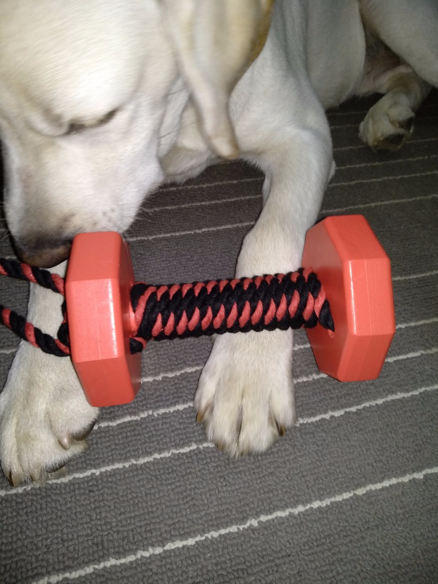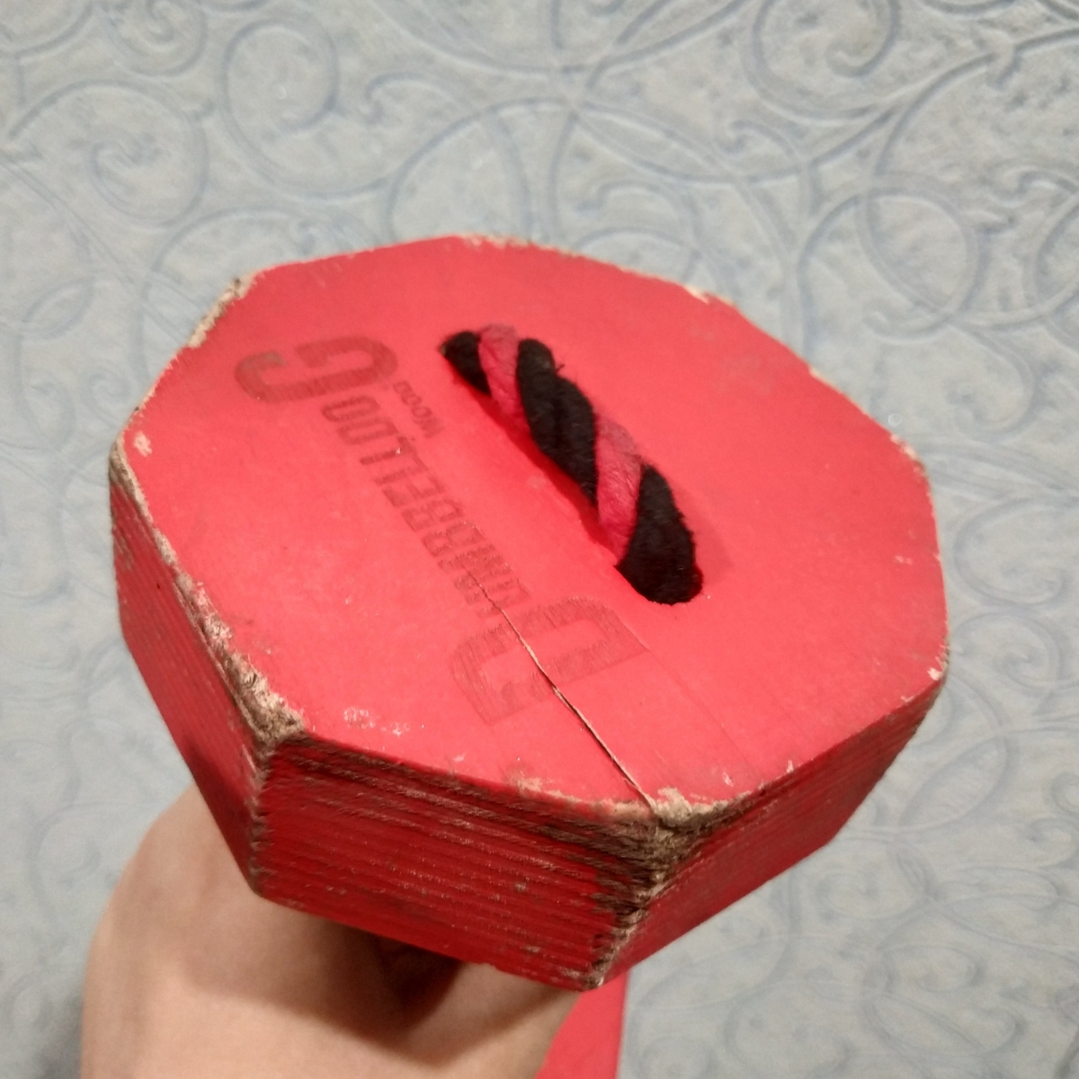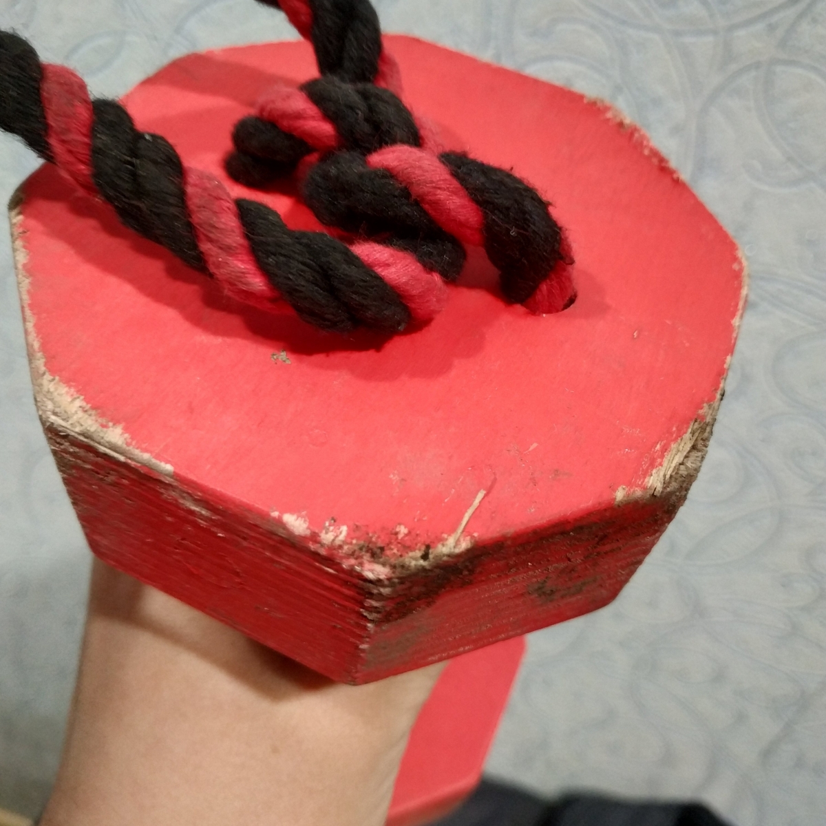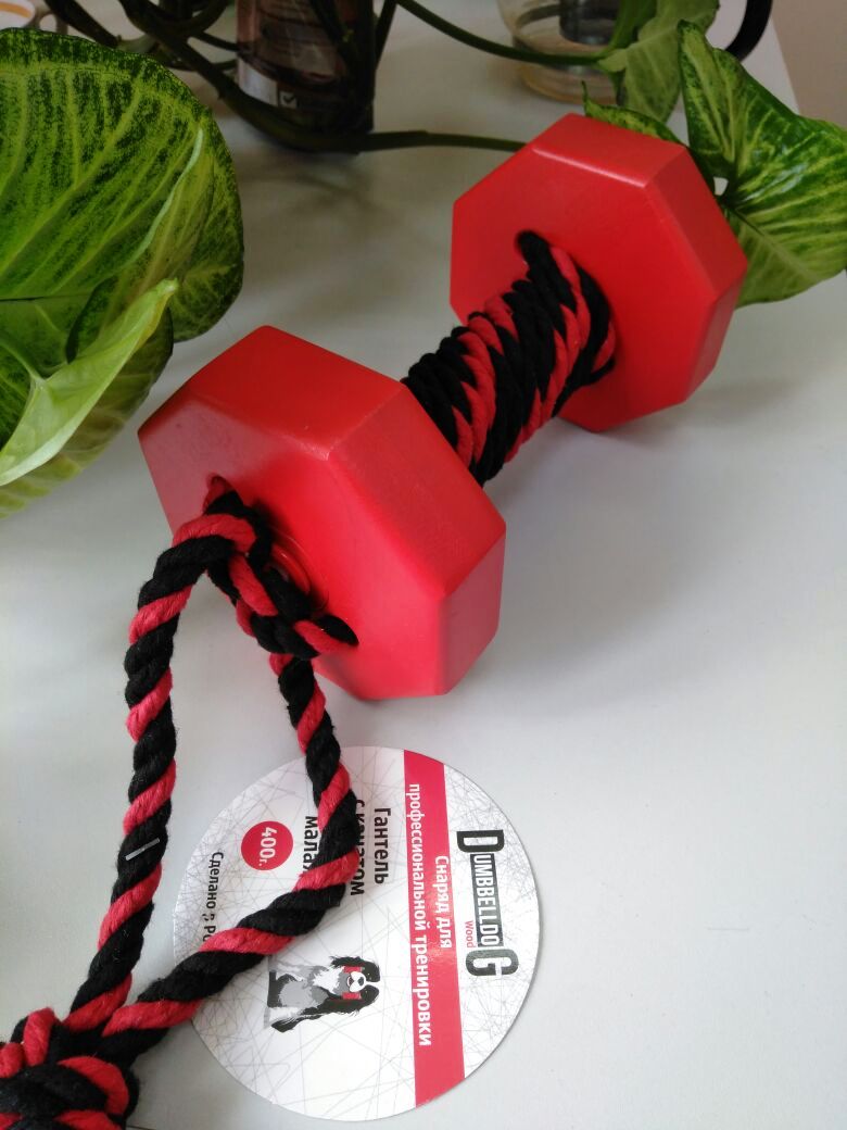 Снаряд для апортировки с канатом "Dumbbelldog Wood DL", цвет: красный, 1 кг, большая