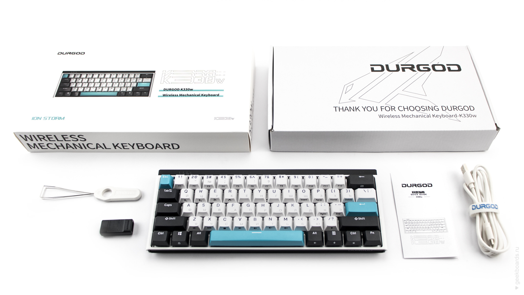 Клавиатура, Игровая клавиатура беспроводная Durgod K330W , (Gateron Crystal Blue), серый металлик, черный