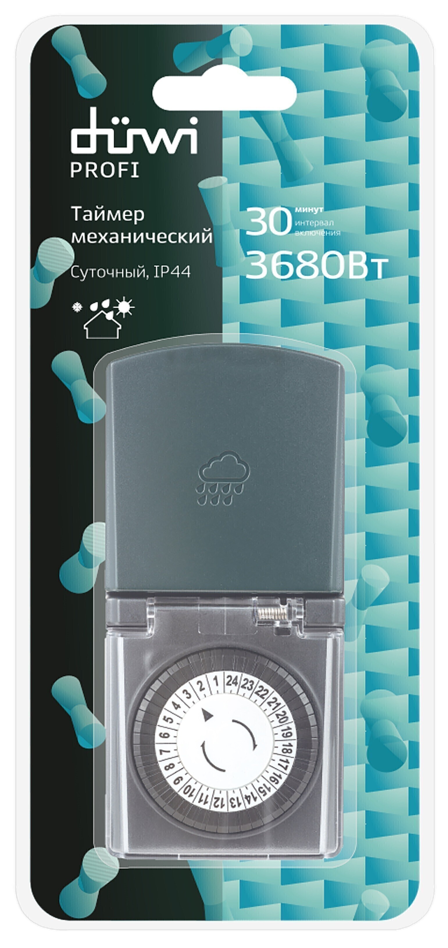 Таймер механический суточный влагозащищенный с крышкой 16А 3680Вт duwi 25804 9